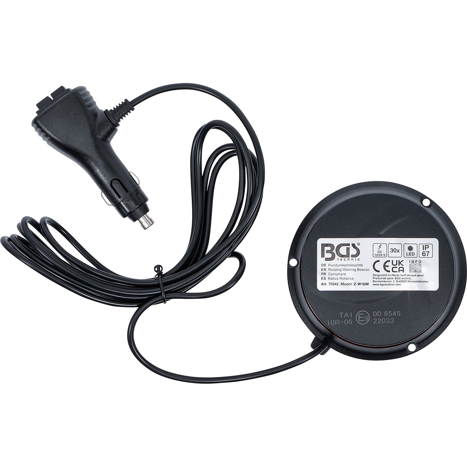 - 1x BGS Rundumkennleuchte gelb mit Magnet 12 V / 24 V Ø 130 mm