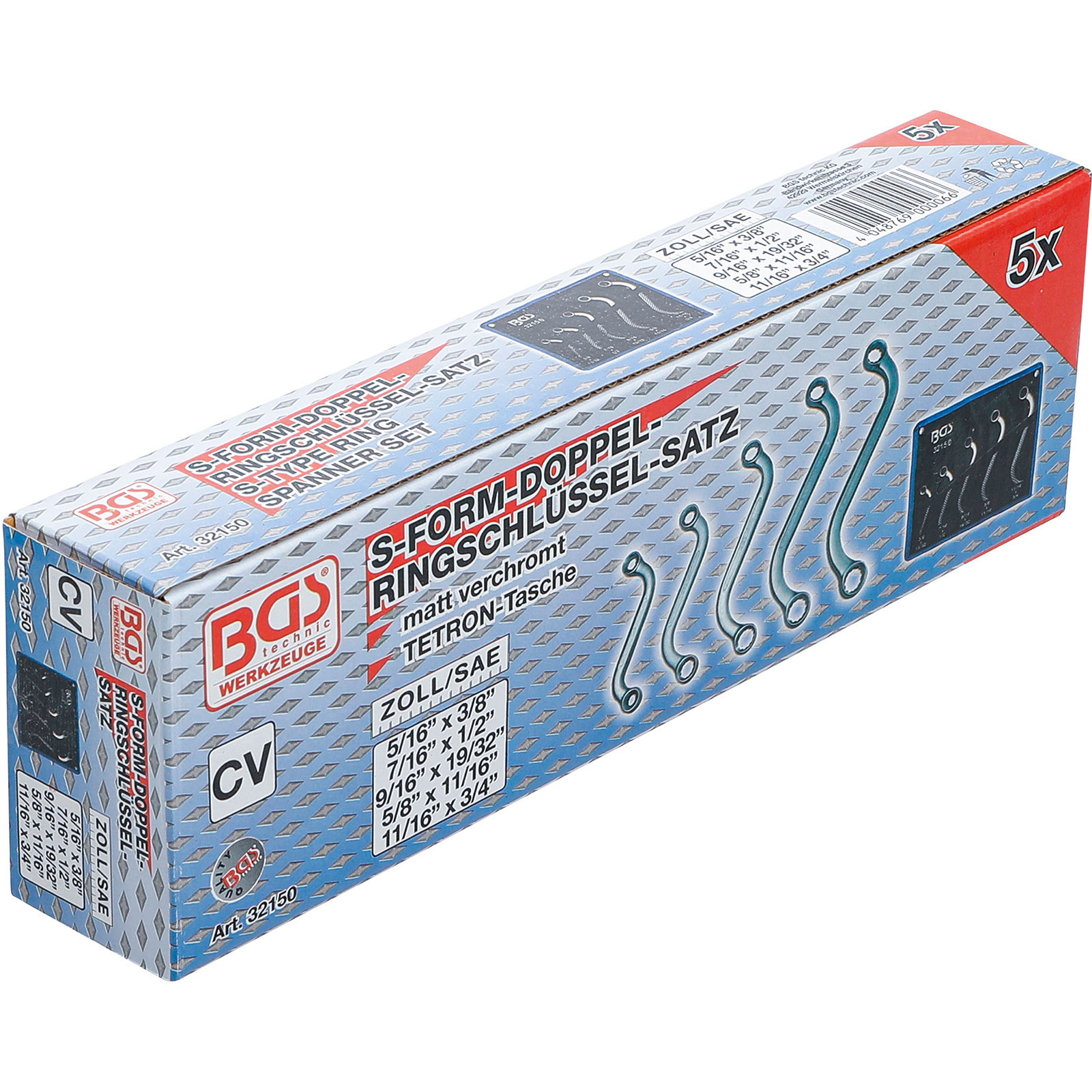 "BGS S-Form Doppel-Ringschlüssel-Satz Zollgrößen SW 3/8" - 3/4" 5tlg. - 32150"
