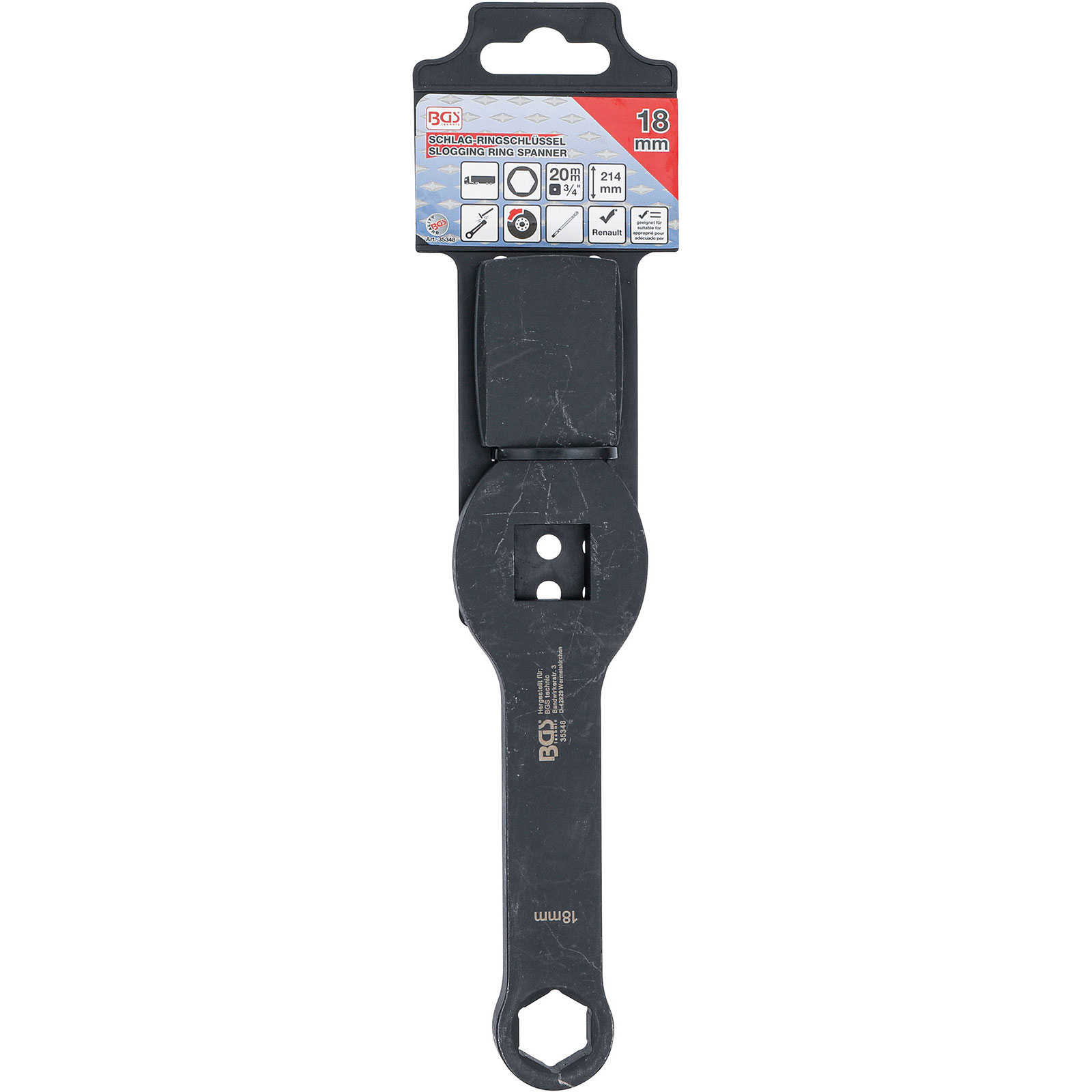 "BGS Schlag-Ringschlüssel Sechskant mit 2 Schlagflächen SW 18 mm - 35348"