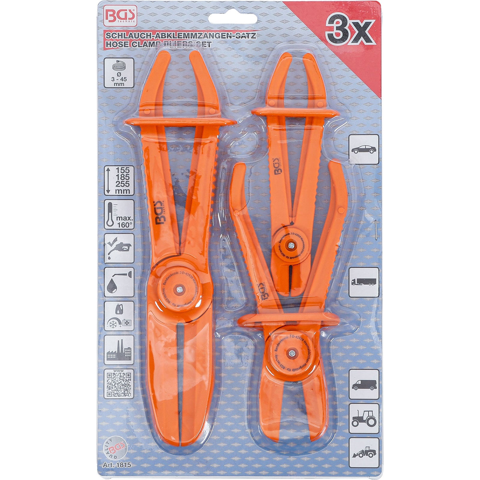 "BGS Schlauch-Abklemmzangen-Satz 155-255 mm 3tlg. - 1815"