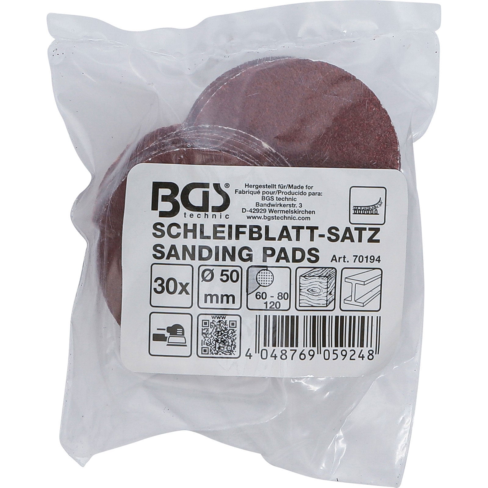 "BGS Schleifblatt-Satz für Exzenterschleifer Ø 50 mm K 60 - 80 - 120 30tlg. - 70194"