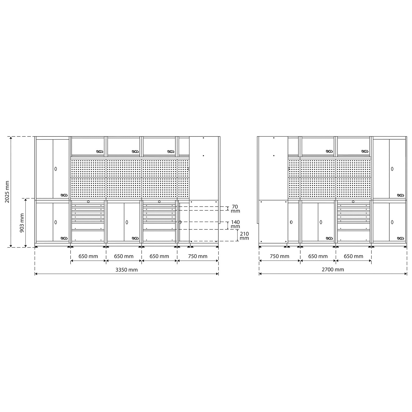 - 14x BGS Werkzeug-Lochwände