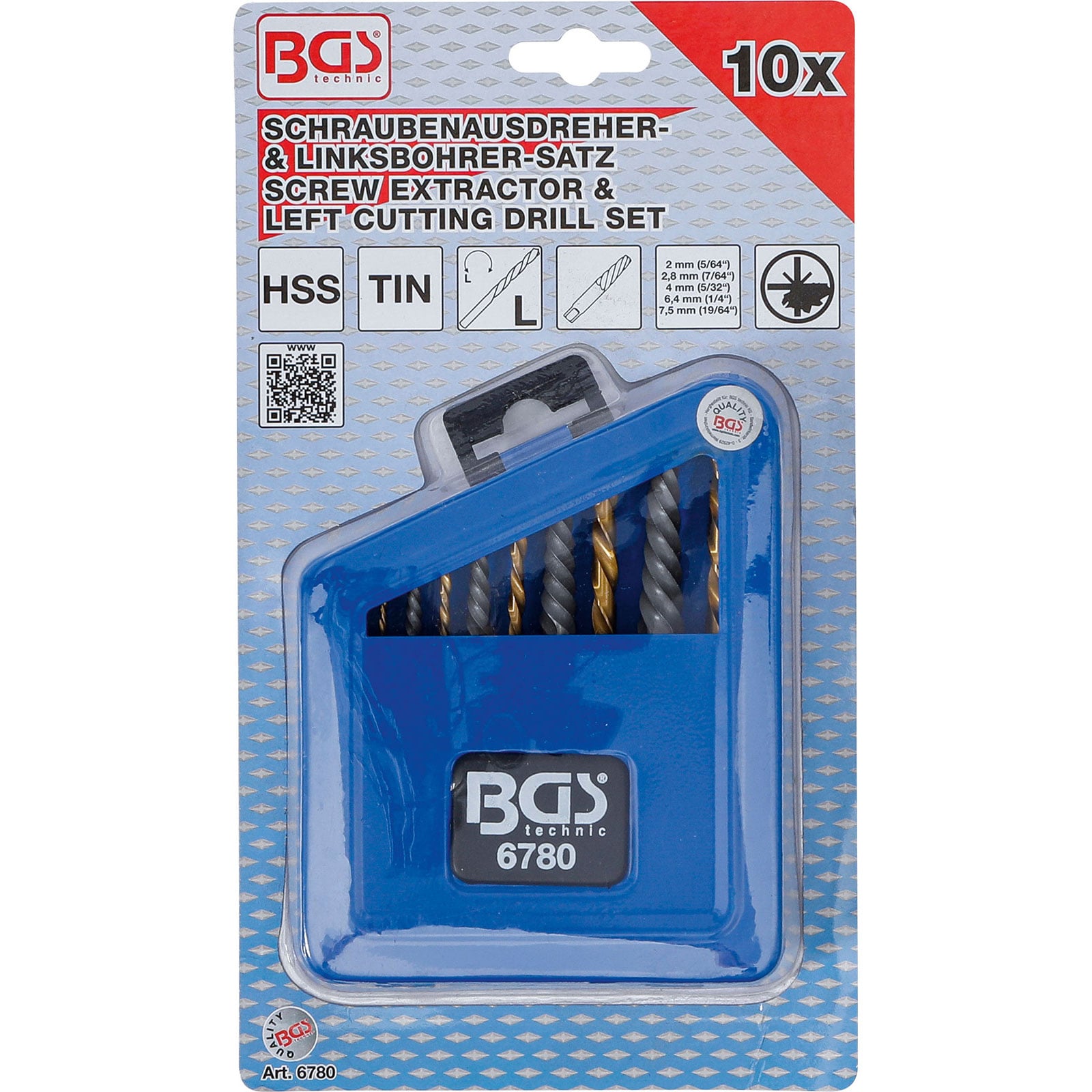 "BGS Schraubenausdreher- & Linksbohrer-Satz HSS titan-nitriert 2 - 7,5 mm 10tlg. - 6780"