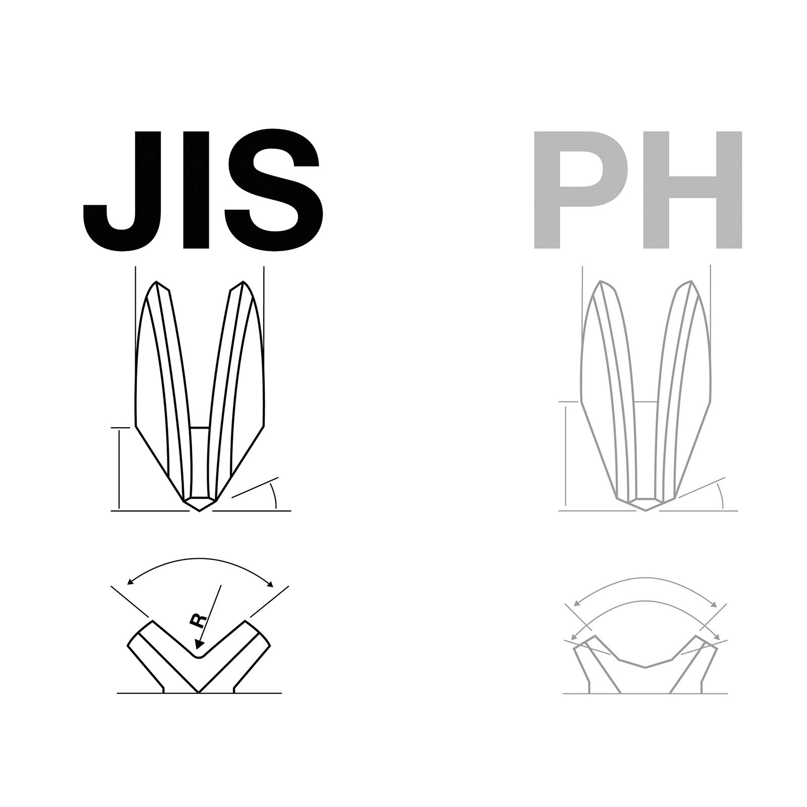 - diese speziellen Schraubenköpfe haben andere Abmessungen und Winkel als eine PH-Schraube