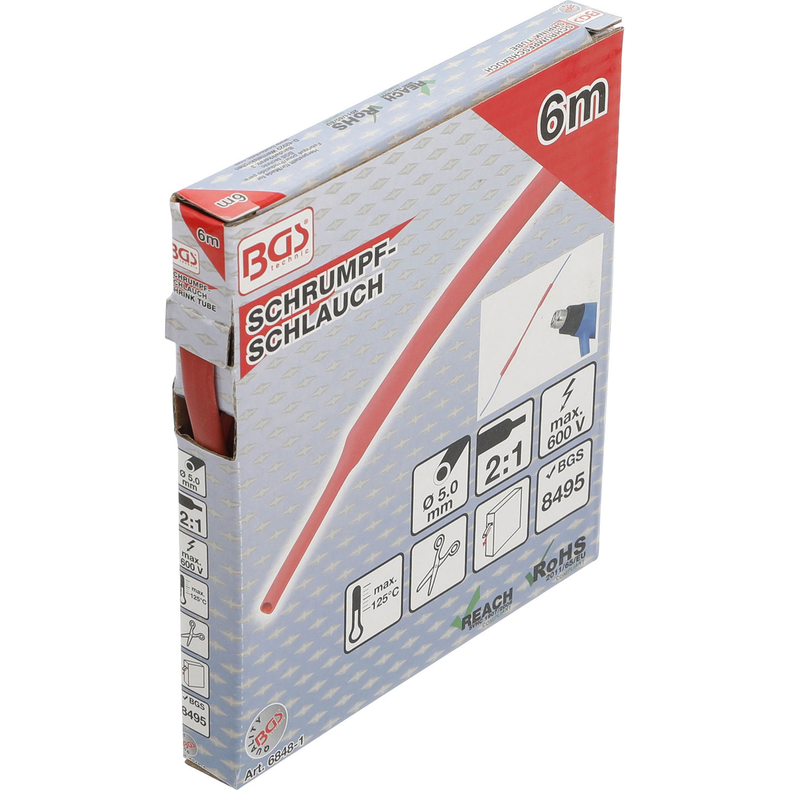 "BGS Schrumpfschlauch-Box rot Ø 5 mm 6 m - 6848-1"