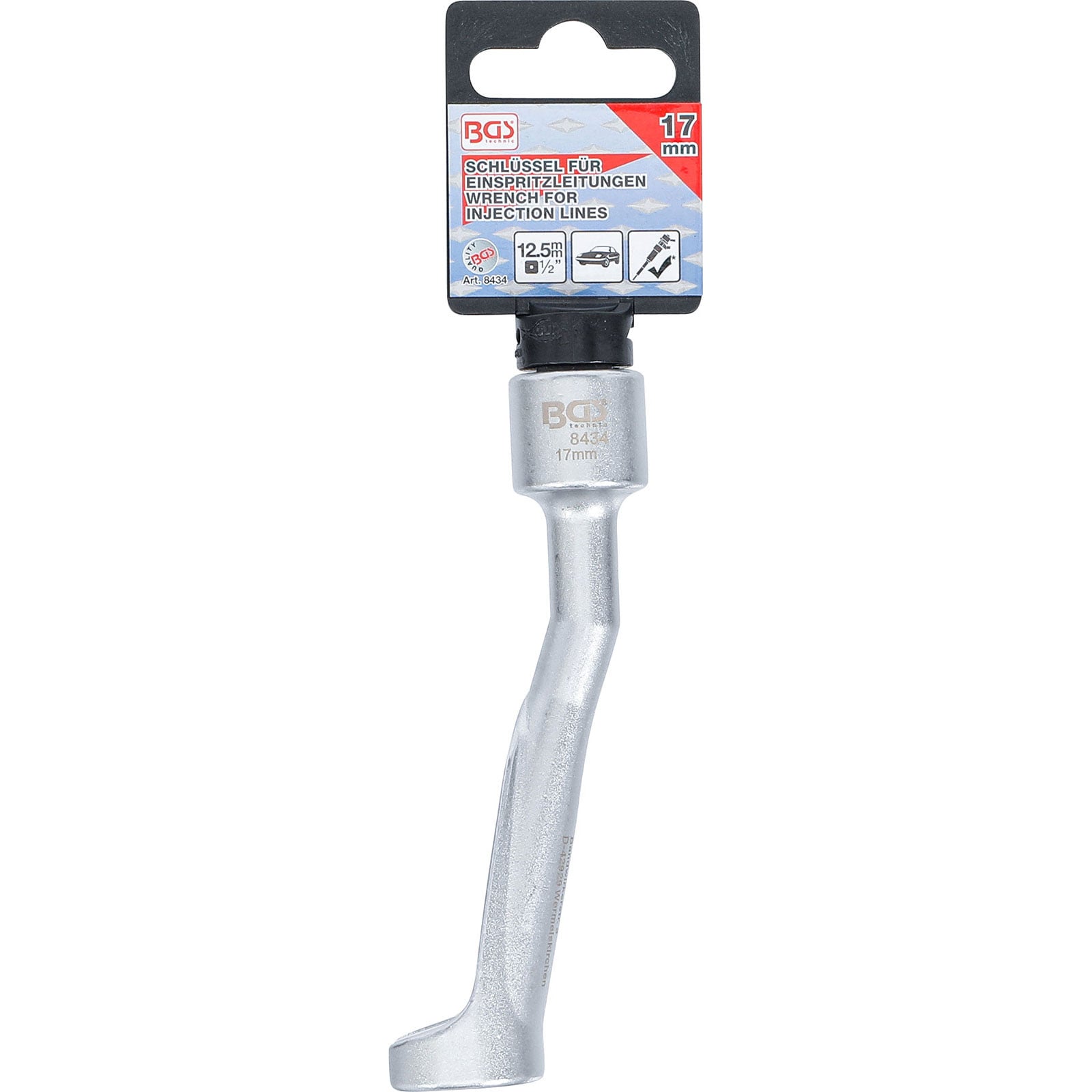 "BGS Spezial-Schlüssel für Einspritzleitungen für BMW / Opel 2.5TD / Mercedes-Benz Antrieb 12,5 mm (1/2") SW 17 mm - 8434"