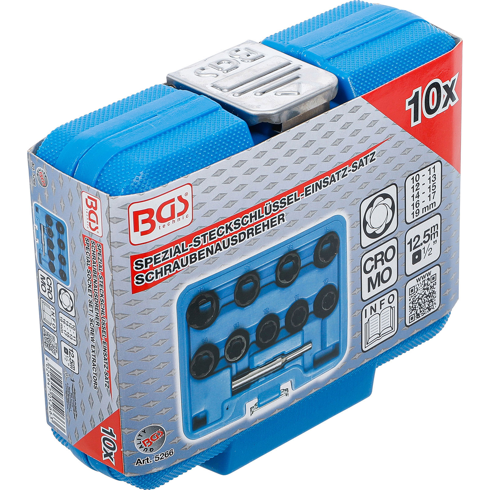 - 1x BGS Spiral-Profil-Steckschlüssel-Satz / Schraubenausdreher Antrieb Innenvierkant 12,5 mm (1/2") SW 10
