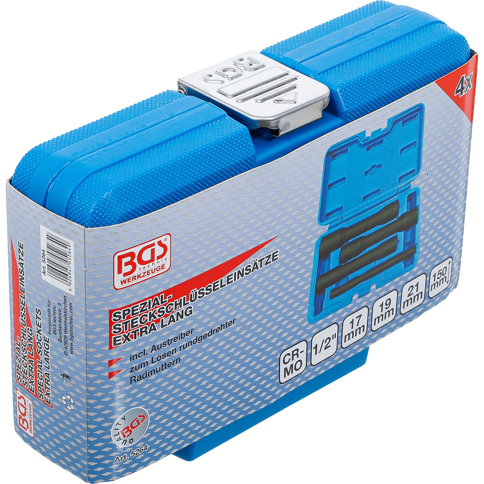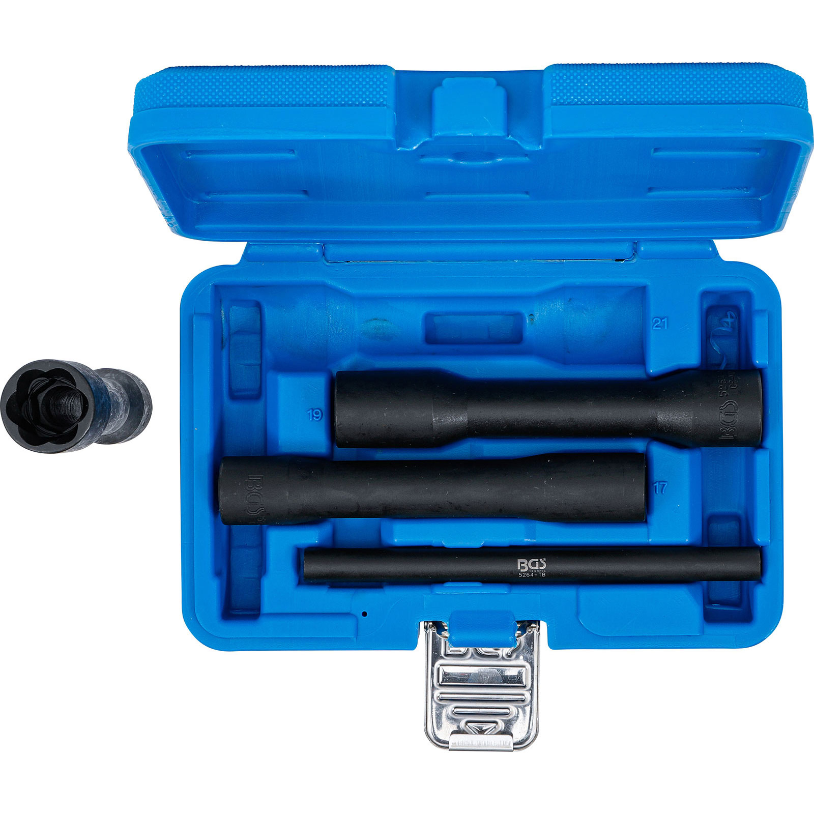 "BGS Spiral-Profil-Steckschlüssel-Satz / Schraubenausdreher, tief Antrieb Innenvierkant 12,5 mm (1/2") SW 17 -21 mm 4tlg. - 5264"