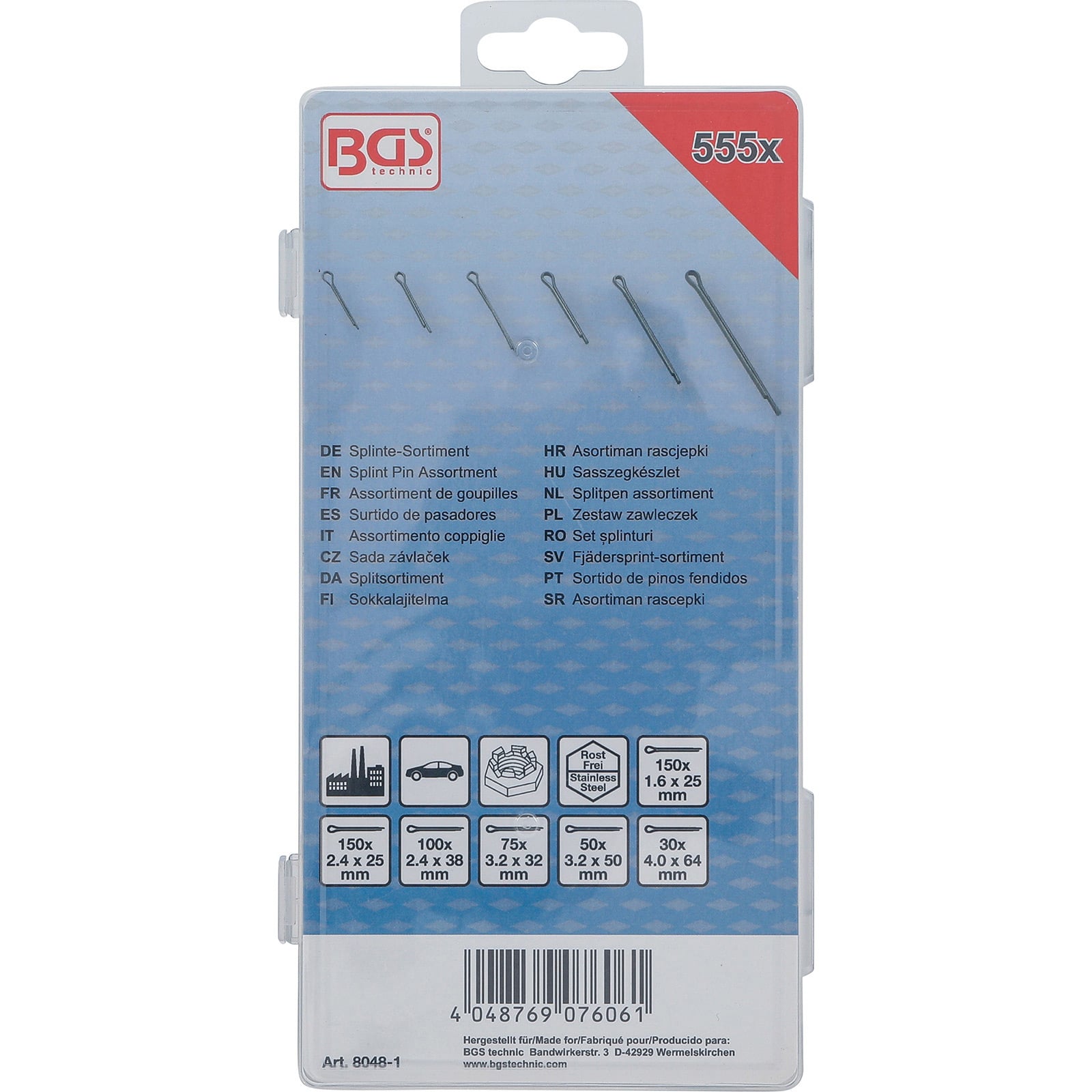"BGS Splinte-Sortiment Edelstahl Ø 1,6 - 4,0 mm 555tlg. - 8048-1"