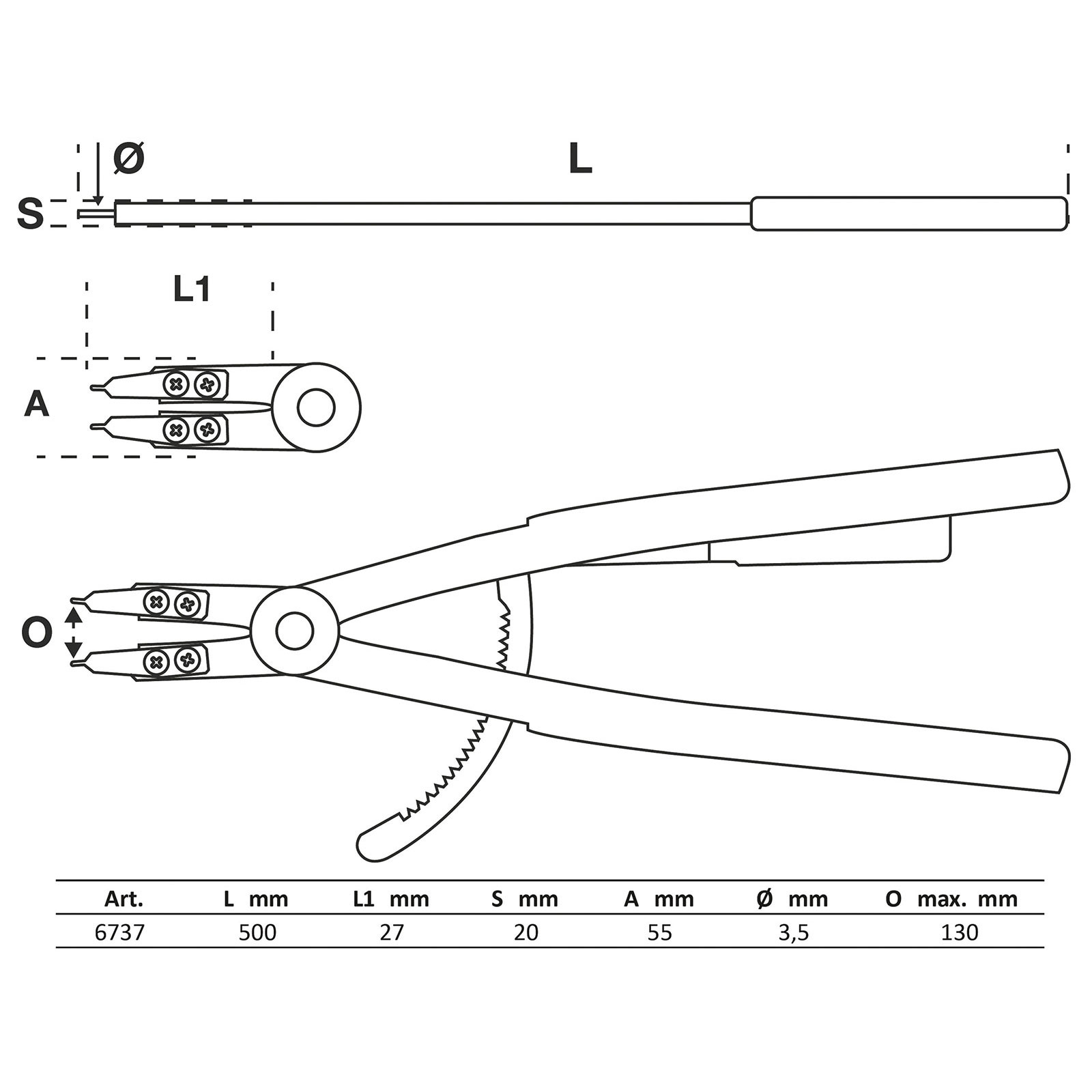 "BGS Sprengringzange gerade für Innensprengringe 500 mm - 6737"