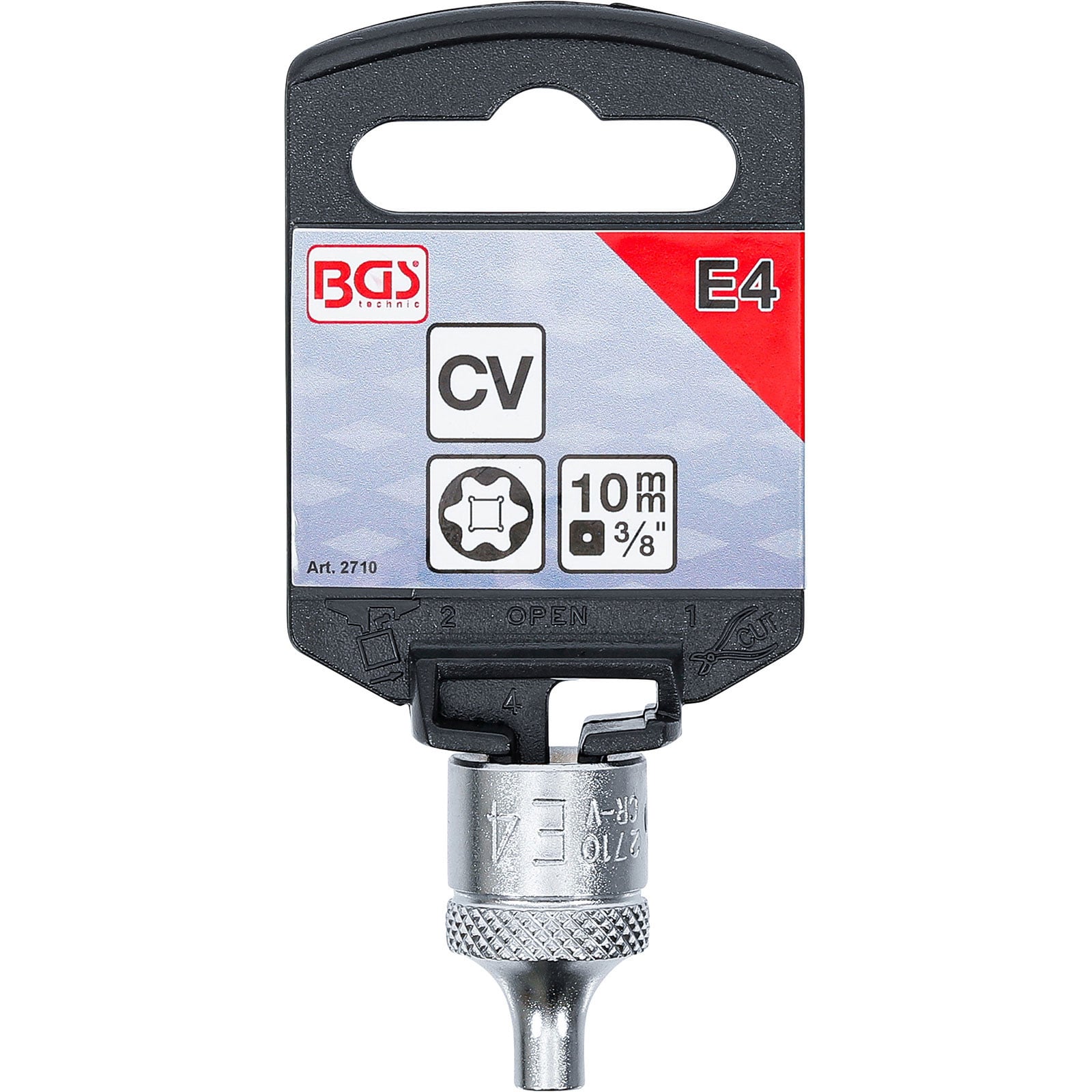 - 1x BGS Steckschlüssel-Einsatz E-Profil Antrieb Innenvierkant 10 mm (3/8") SW E4