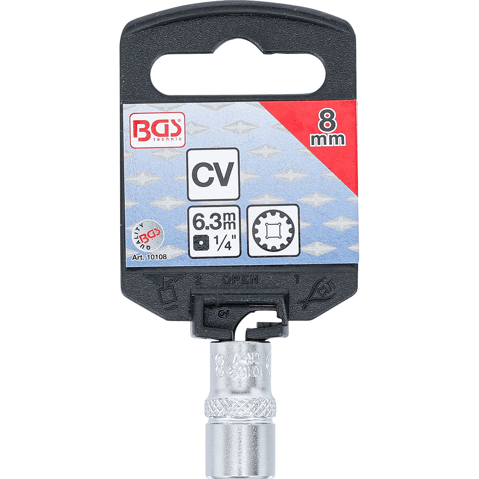 "BGS Steckschlüssel-Einsatz Gear Lock Antrieb Innenvierkant 6,3 mm (1/4") SW 8 mm - 10108"