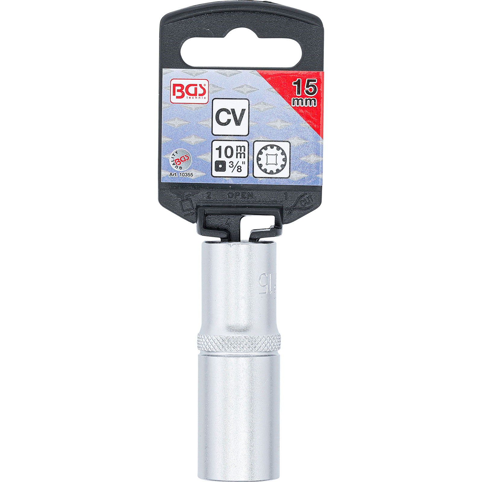 - 1x BGS Steckschlüssel-Einsatz Gear Lock tief Antrieb Innenvierkant 10 mm (3/8") SW 15 mm