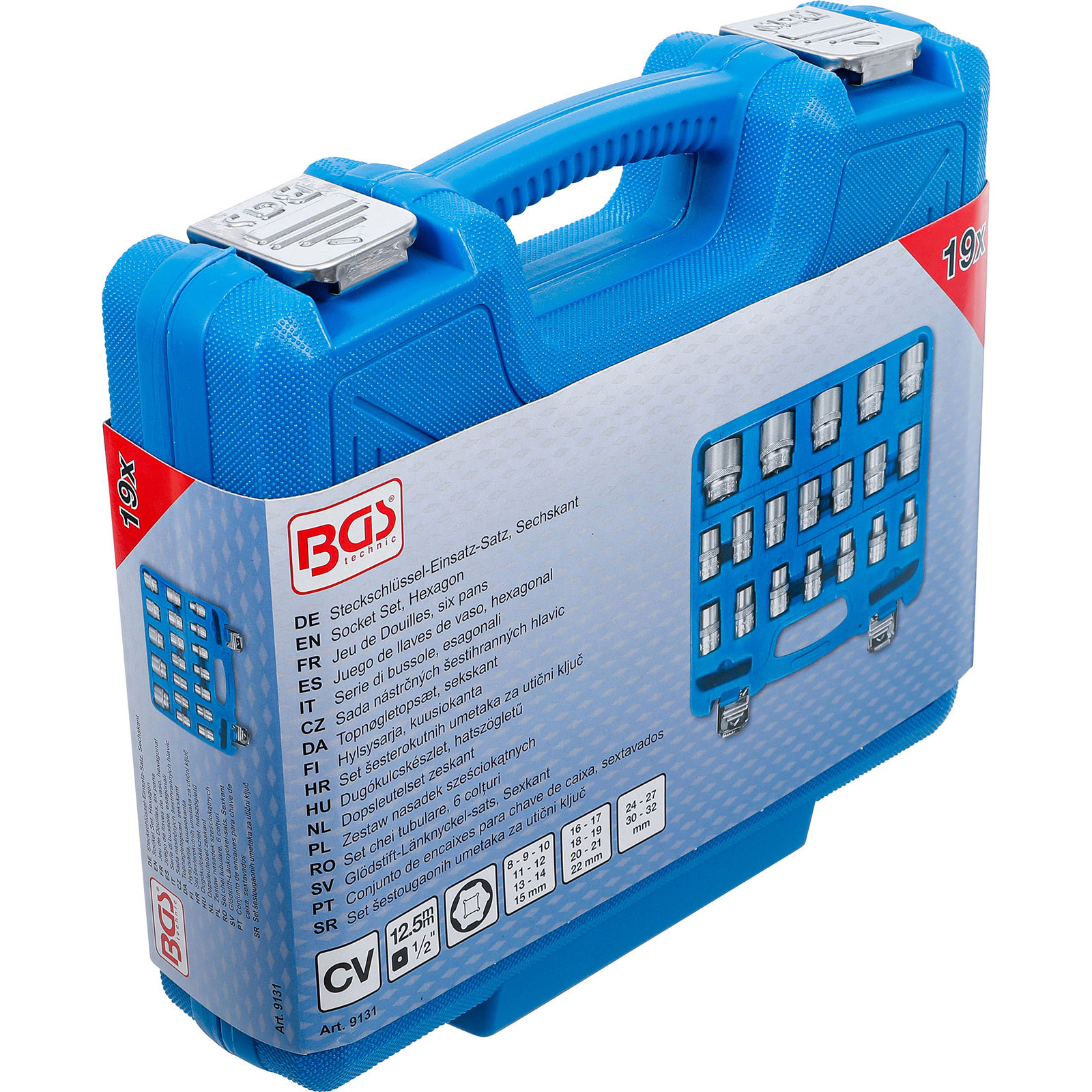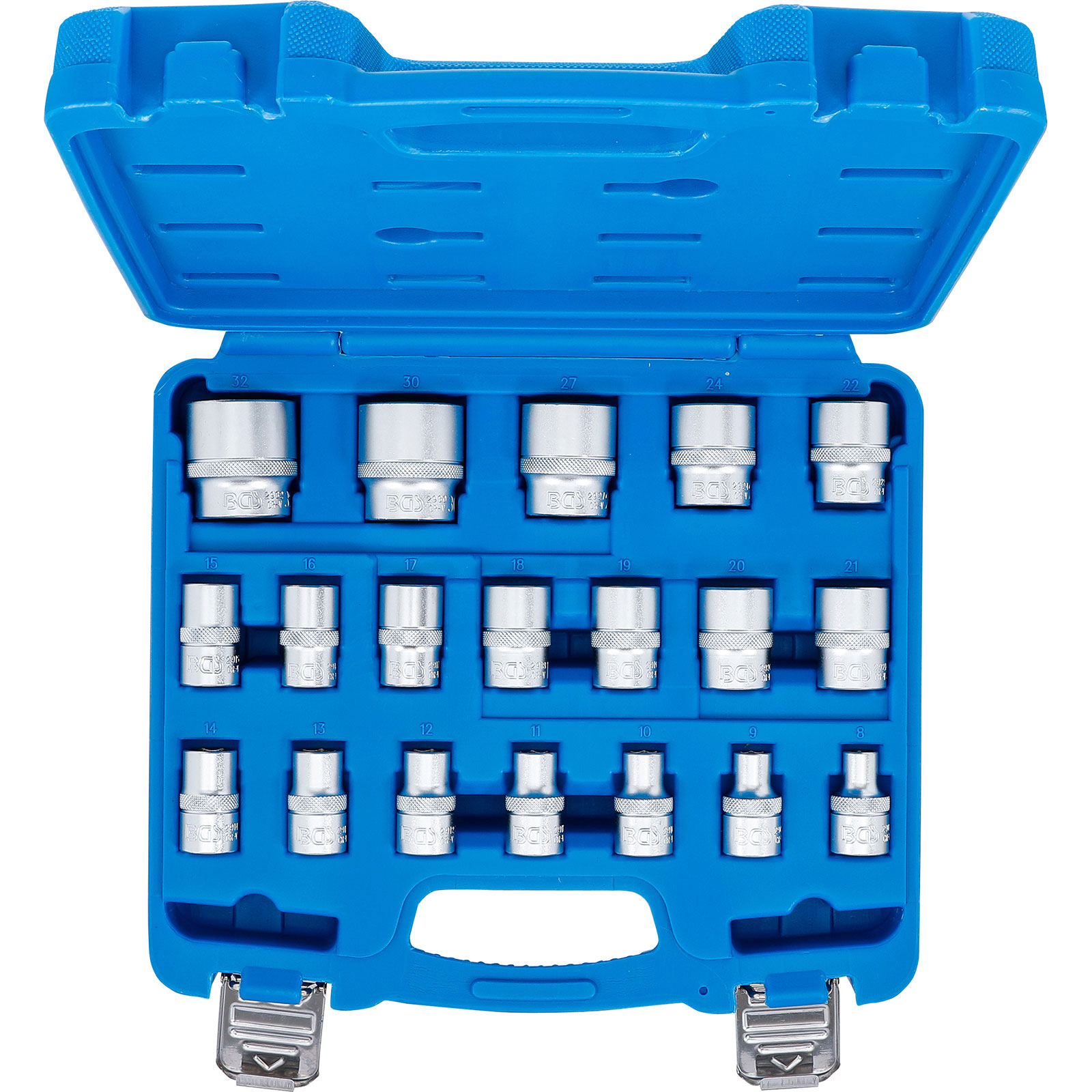 "BGS Steckschlüssel-Einsatz-Satz Sechskant Antrieb Innenvierkant 12,5 mm (1/2") SW 8 - 32 mm 19tlg. - 9131"