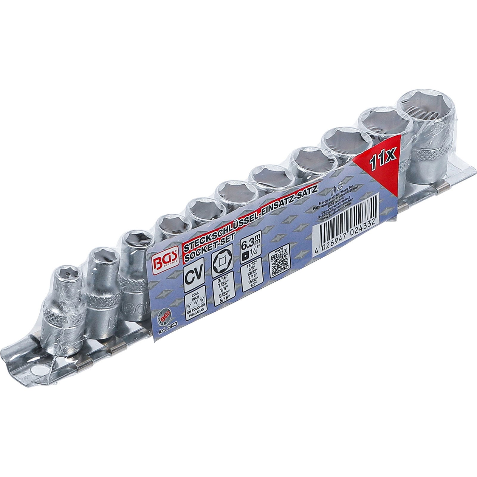 "BGS Steckschlüssel-Einsatz-Satz Sechskant Antrieb Innenvierkant 6,3 mm (1/4") Zollgrößen 11tlg. - 2433"