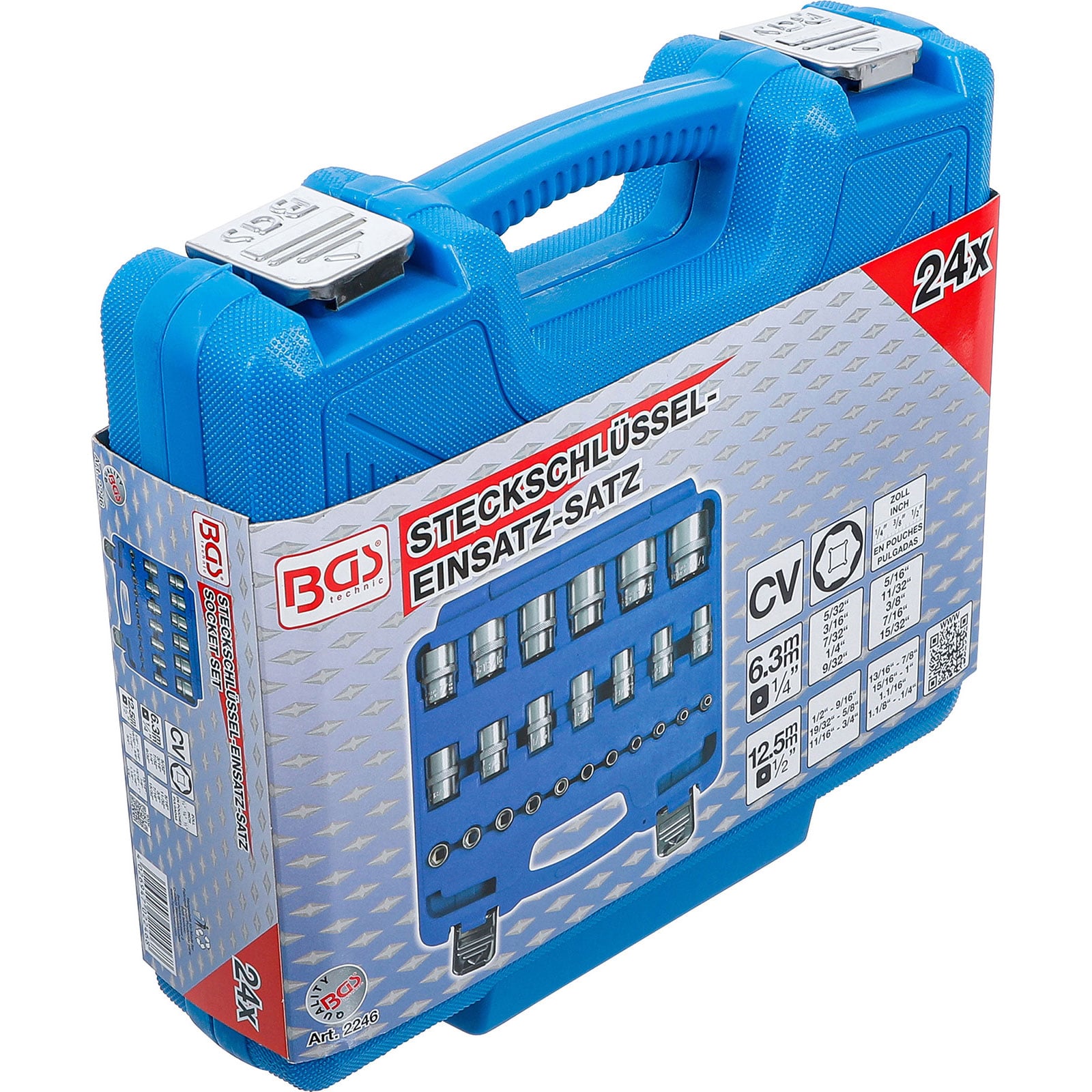 "BGS Steckschlüssel-Einsatz-Satz Sechskant Antriebe Innenvierkant 6,3 mm (1/4"), 12,5 mm (1/2") Zollmaße 24tlg. - 2246"