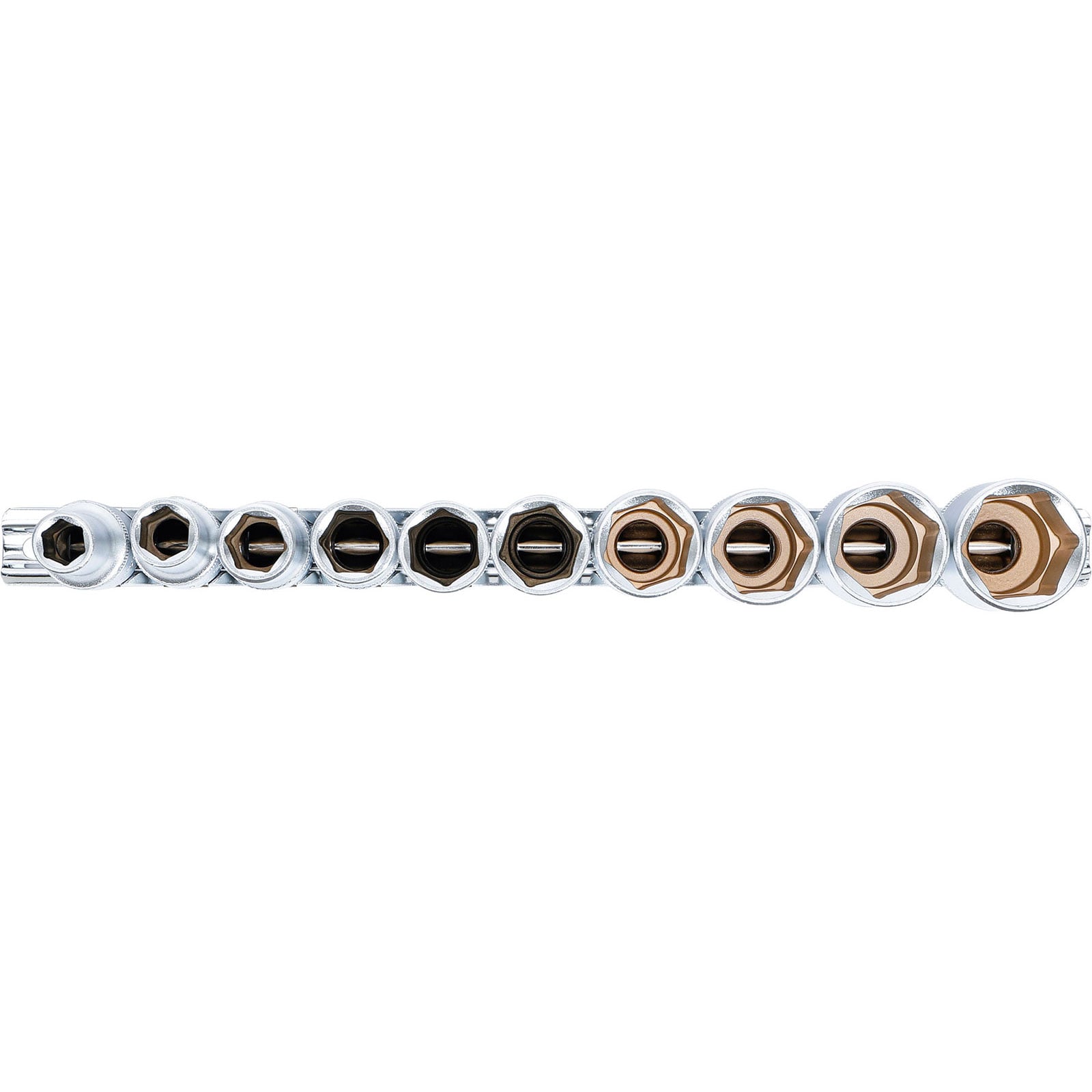 - 1x BGS Steckschlüssel-Einsatz-Satz Sechskant tief Antrieb Innenvierkant 12,5 mm (1/2") Zollgrößen 10tlg.