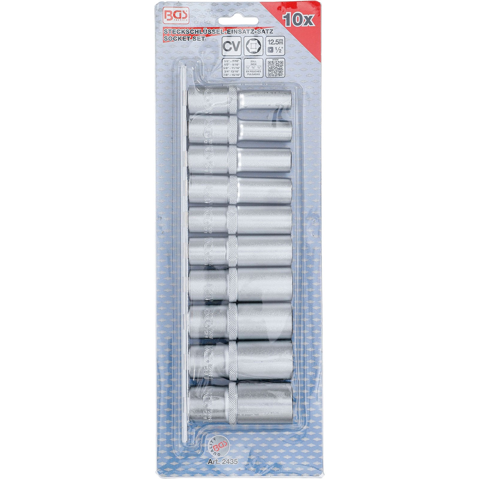 "BGS Steckschlüssel-Einsatz-Satz Sechskant tief Antrieb Innenvierkant 12,5 mm (1/2") Zollgrößen 10tlg. - 2435"