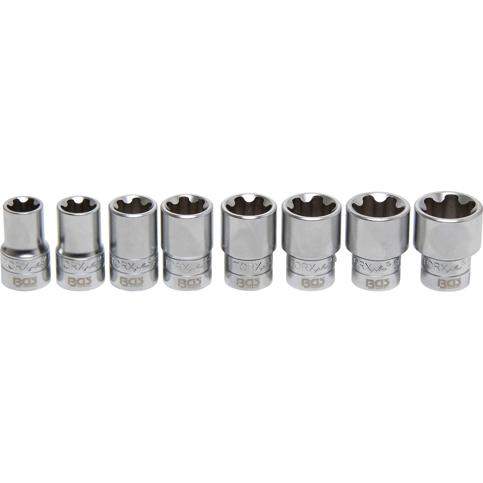 "BGS Steckschlüssel-Einsatz-Satz T-Profil Plus (für Torx Plus) Antrieb Innenvierkant 12,5 mm (1/2") SW 18EP - 32EP 8tlg. - 8806"