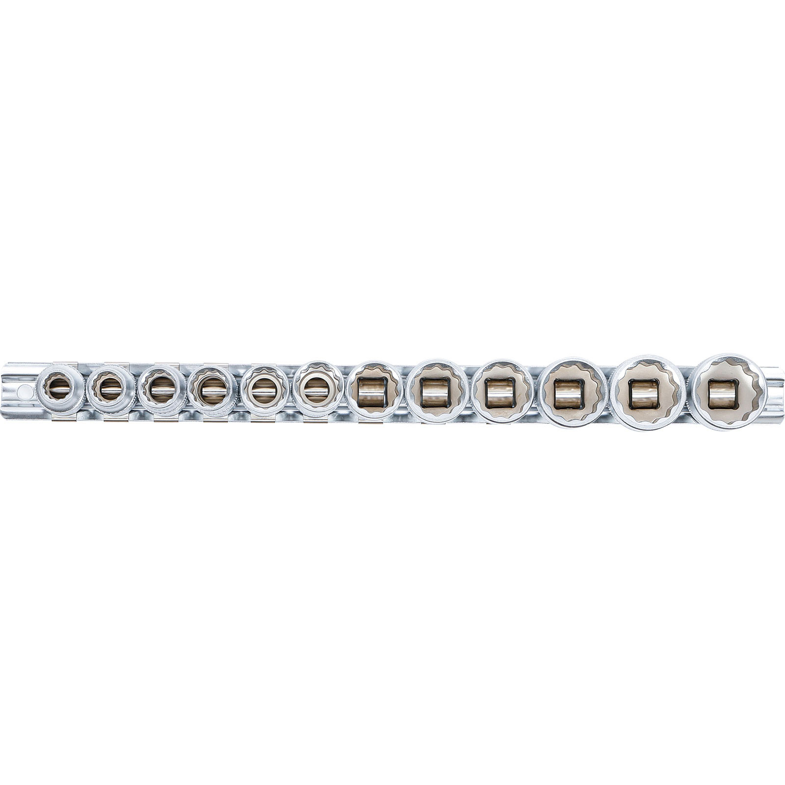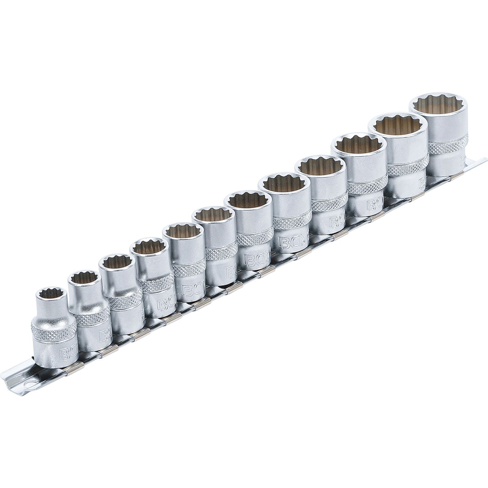 - Steckschlüssel-Einsätze, Antrieb Innenvierkant 10 mm (3/8"), Zwölfkant: SW 8 - 9 - 10 - 11 - 12 - 13 - 14 - 15 - 16 - 17 - 18 - 19 mm