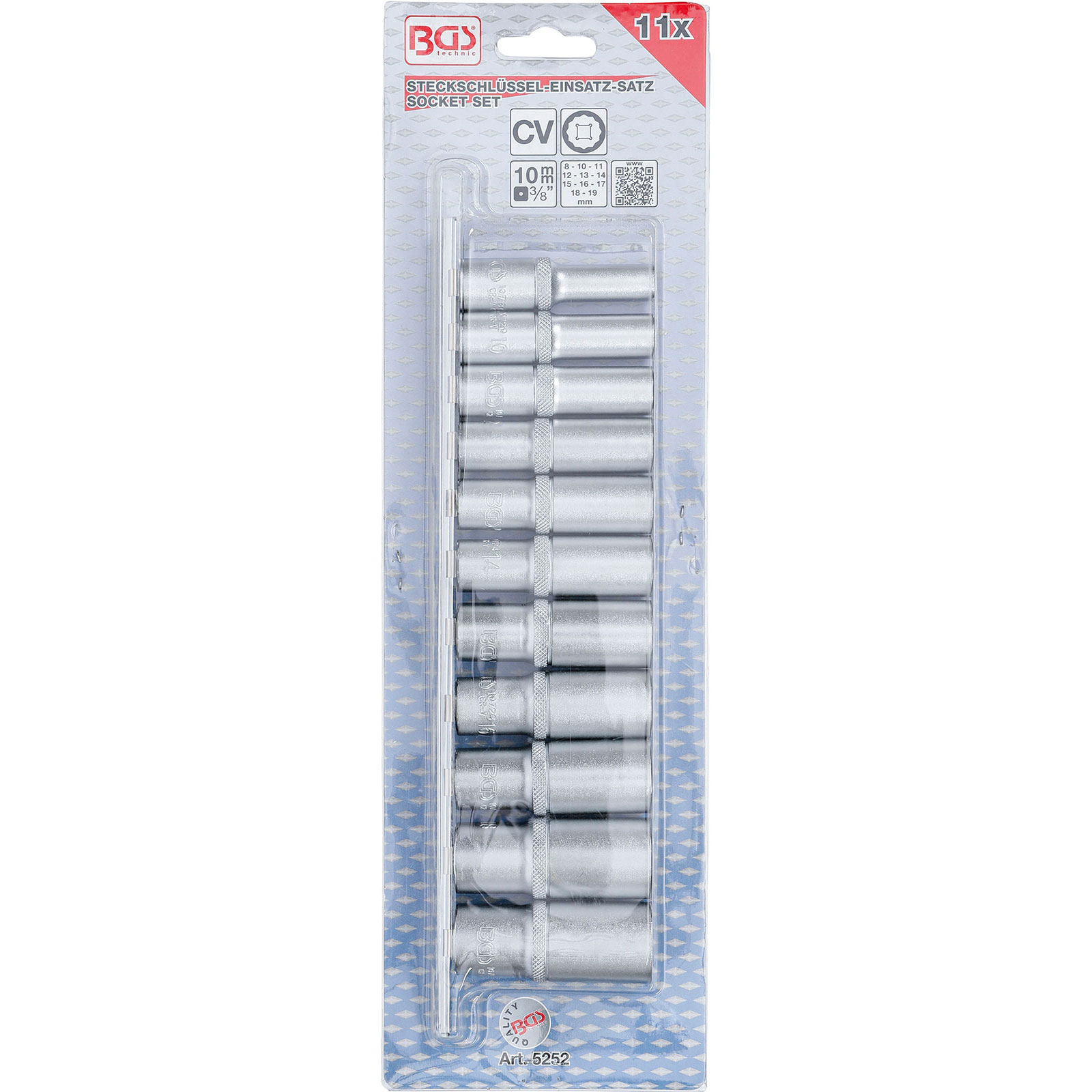 "BGS Steckschlüssel-Einsatz-Satz Zwölfkant, tief Antrieb Innenvierkant 10 mm (3/8") SW 8 - 19 mm 11tlg. - 5252"