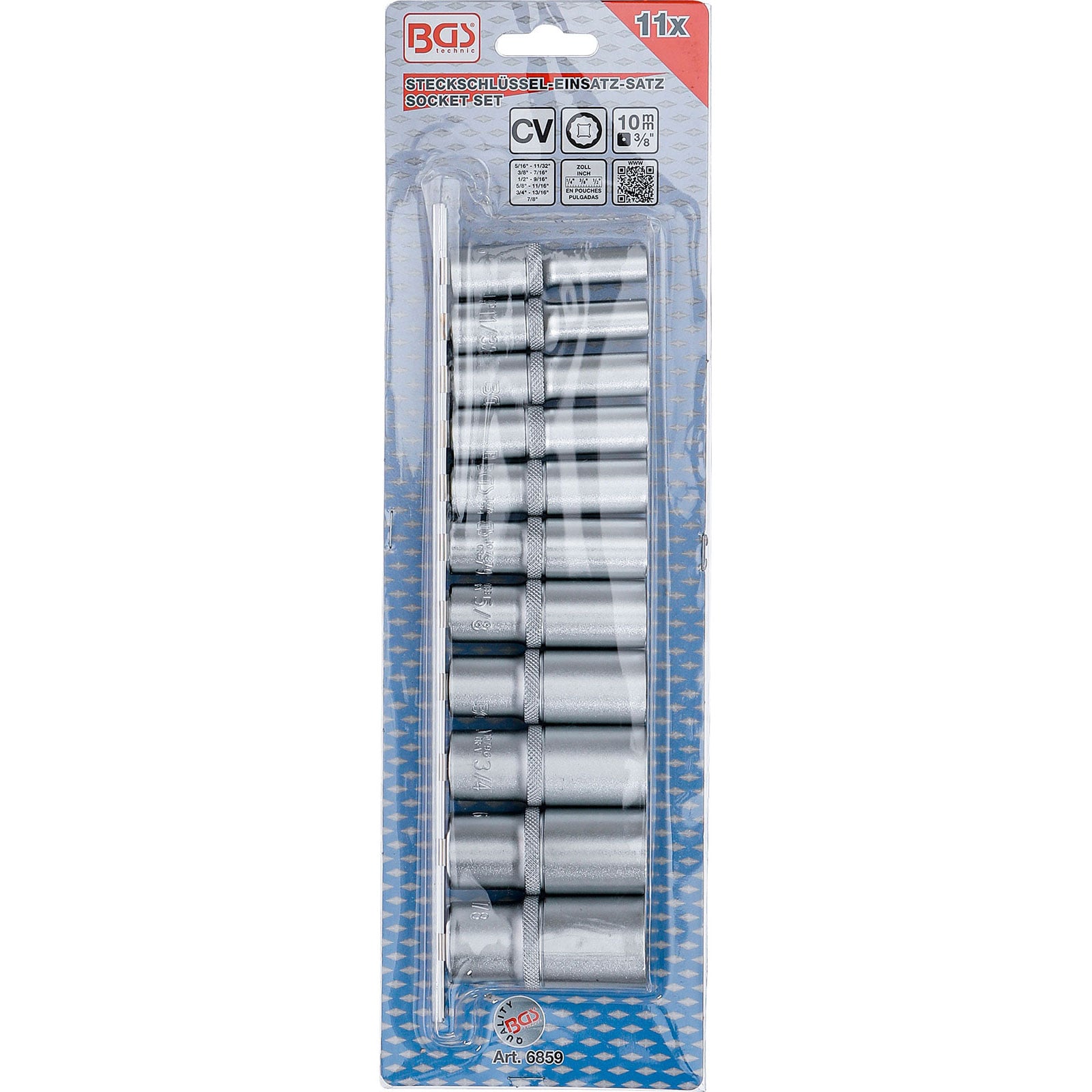 "BGS Steckschlüssel-Einsatz-Satz Zwölfkant, tief Antrieb Innenvierkant 10 mm (3/8") Zollgrößen 11tlg. - 6859"