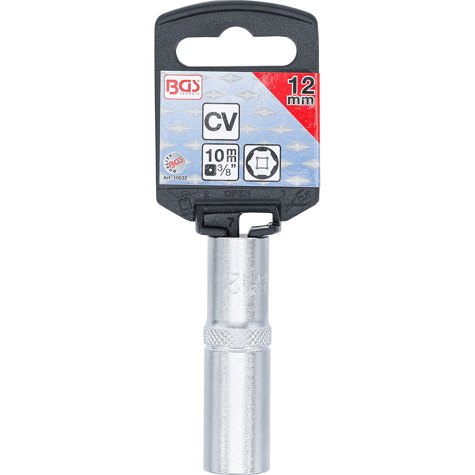 - 1x BGS Steckschlüssel-Einsatz Sechskant tief Antrieb Innenvierkant 10 mm (3/8") SW 12 mm