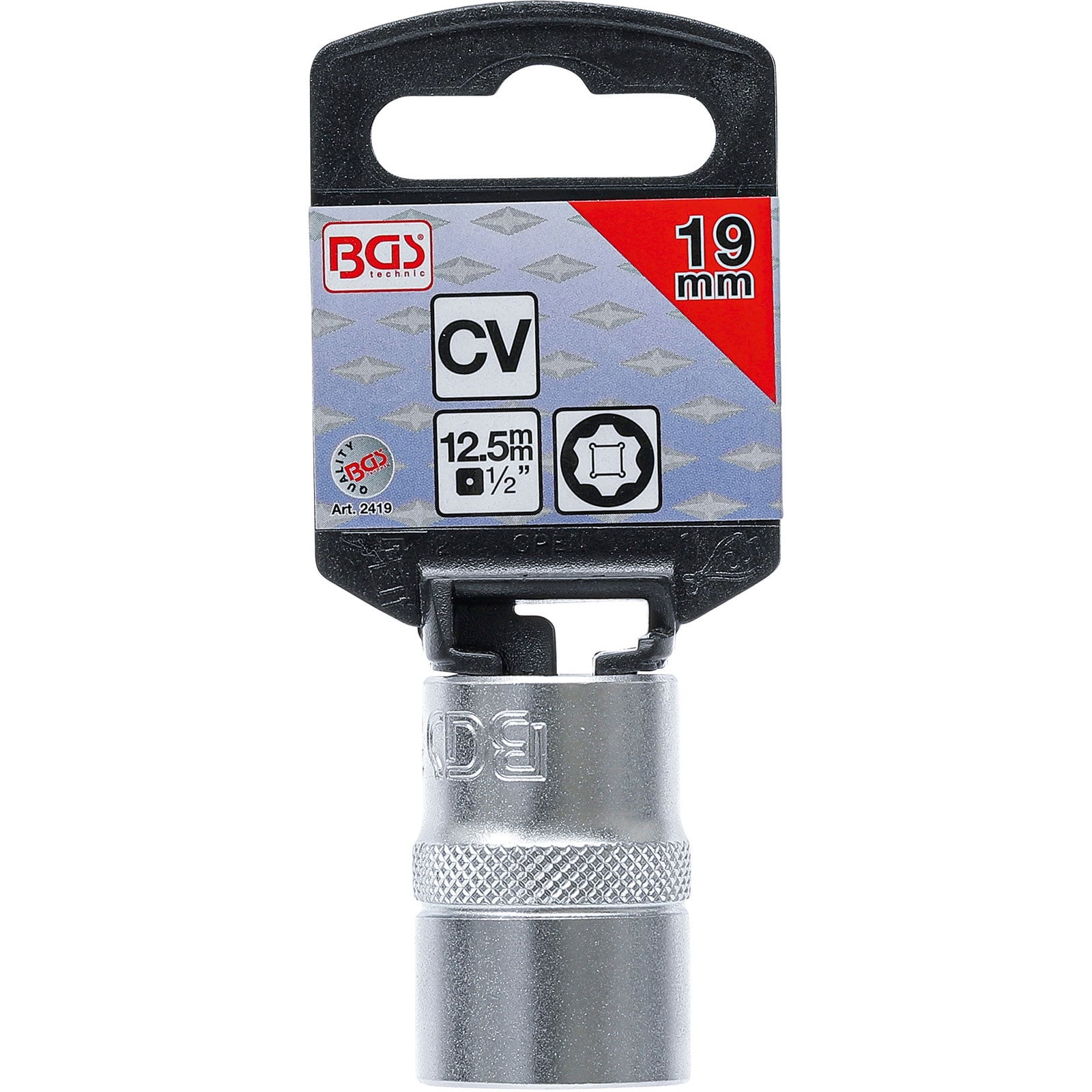 "BGS Steckschlüssel-Einsatz Super Lock Antrieb Innenvierkant 12,5 mm (1/2") SW 19 mm - 2419"