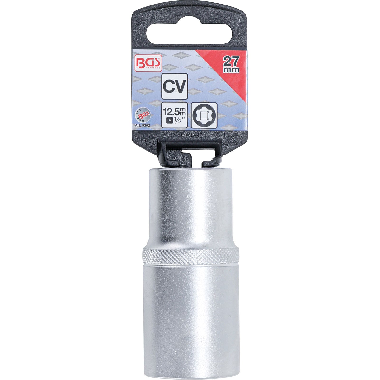 "BGS Steckschlüssel-Einsatz Super Lock tief Antrieb Innenvierkant 12,5 mm (1/2") SW 27 mm - 9362"