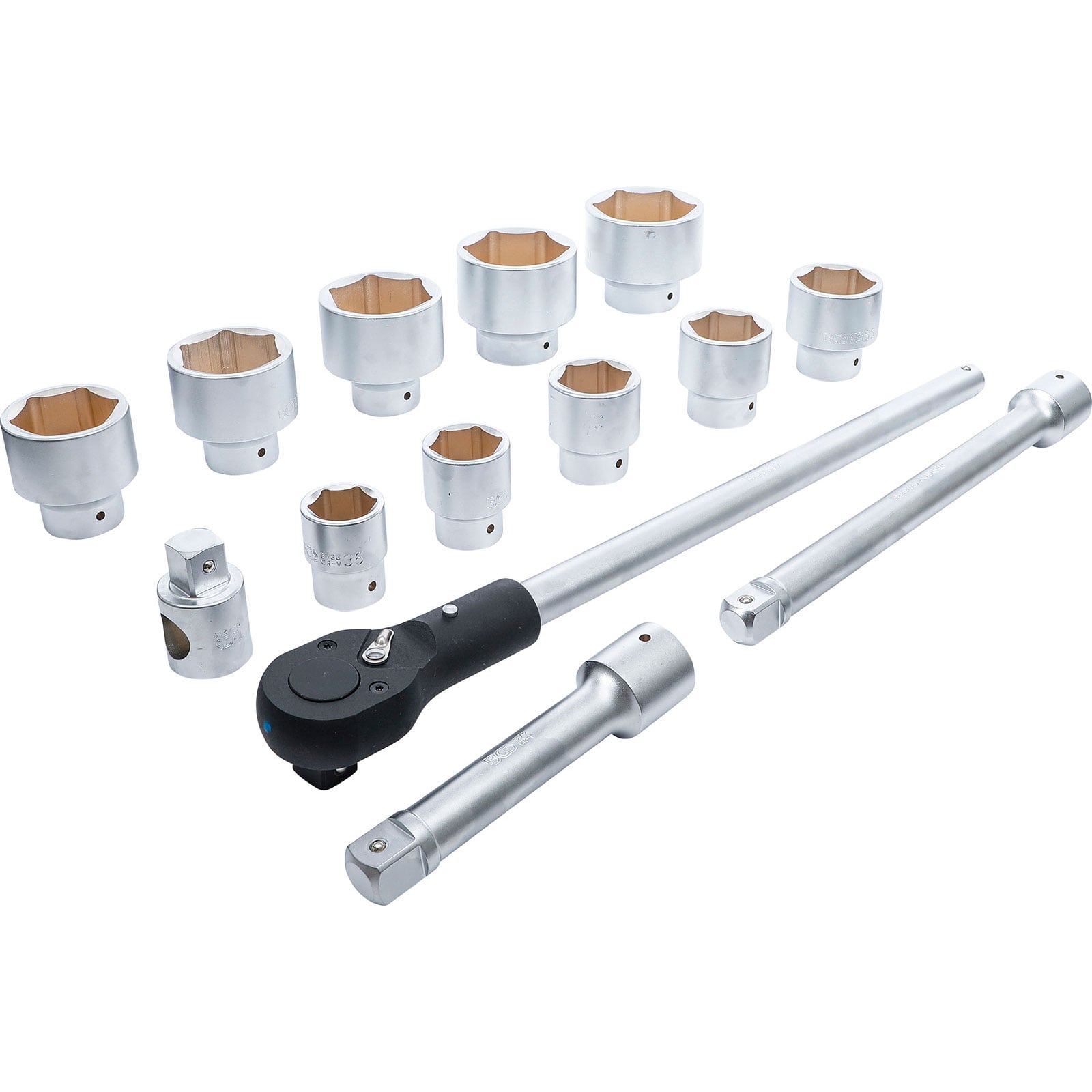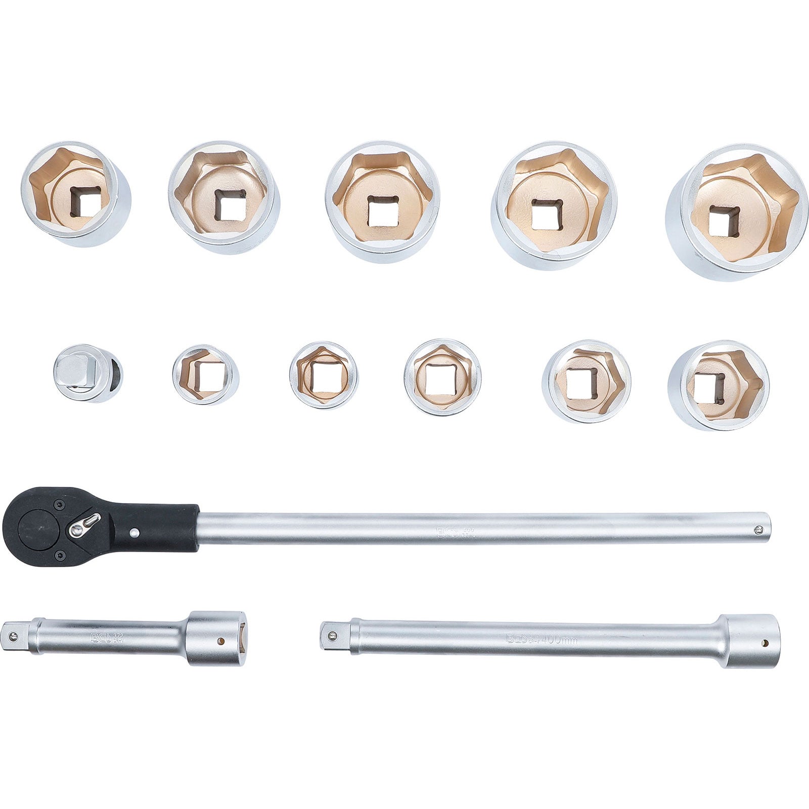 - 10 x Steckschlüssel-Einsätze Sechskant, Antrieb Innenvierkant 25 mm (1"): SW 36 - 41 - 46 - 50 - 55 - 60 - 65 - 70 - 75 - 80 mm