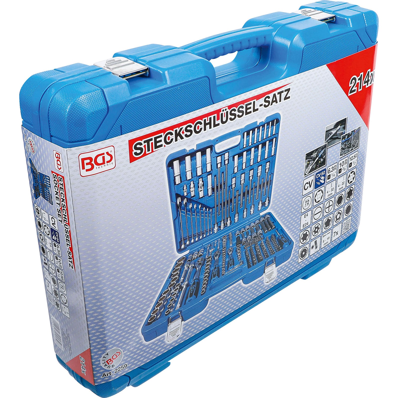 - 1x BGS Steckschlüssel-Satz Sechskant Antrieb 6,3 mm (1/4") / 10 mm (3/8") / 12,5 mm (1/2") 214tlg.