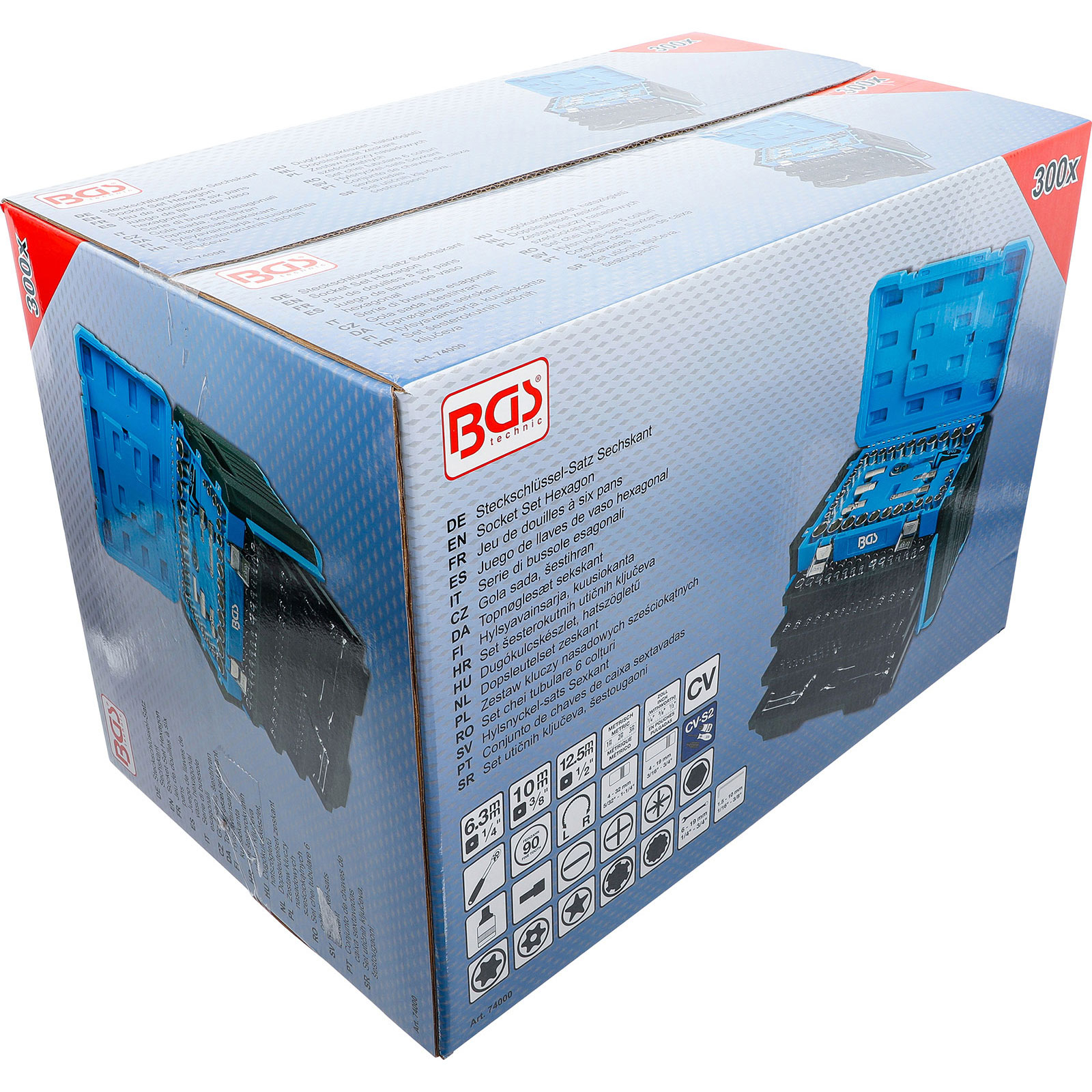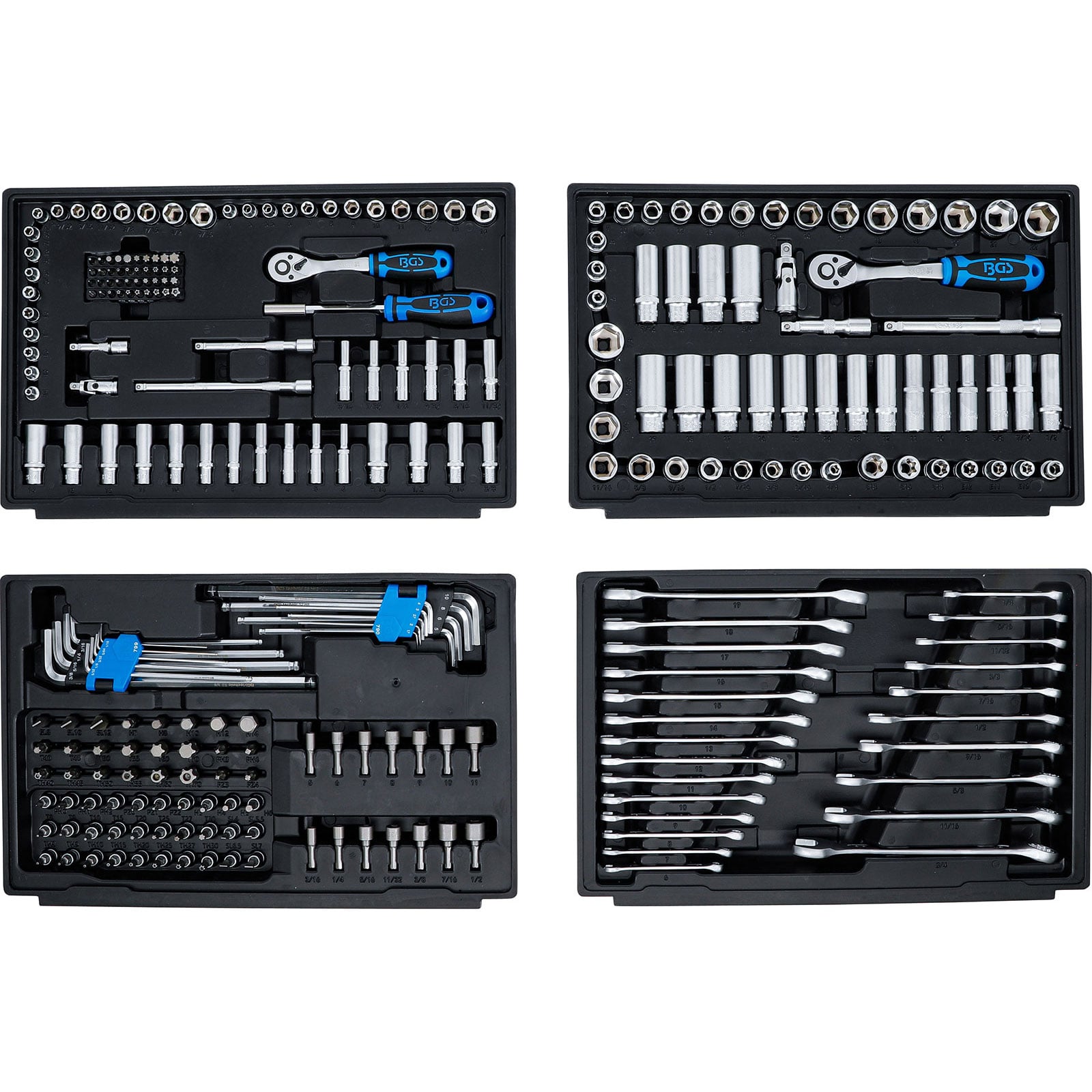 "BGS Steckschlüssel-Satz Sechskant Antrieb 6,3 mm (1/4") / 10 mm (3/8") / 12,5 mm (1/2") metrisch & Zollgrößen 300tlg. - 74000"