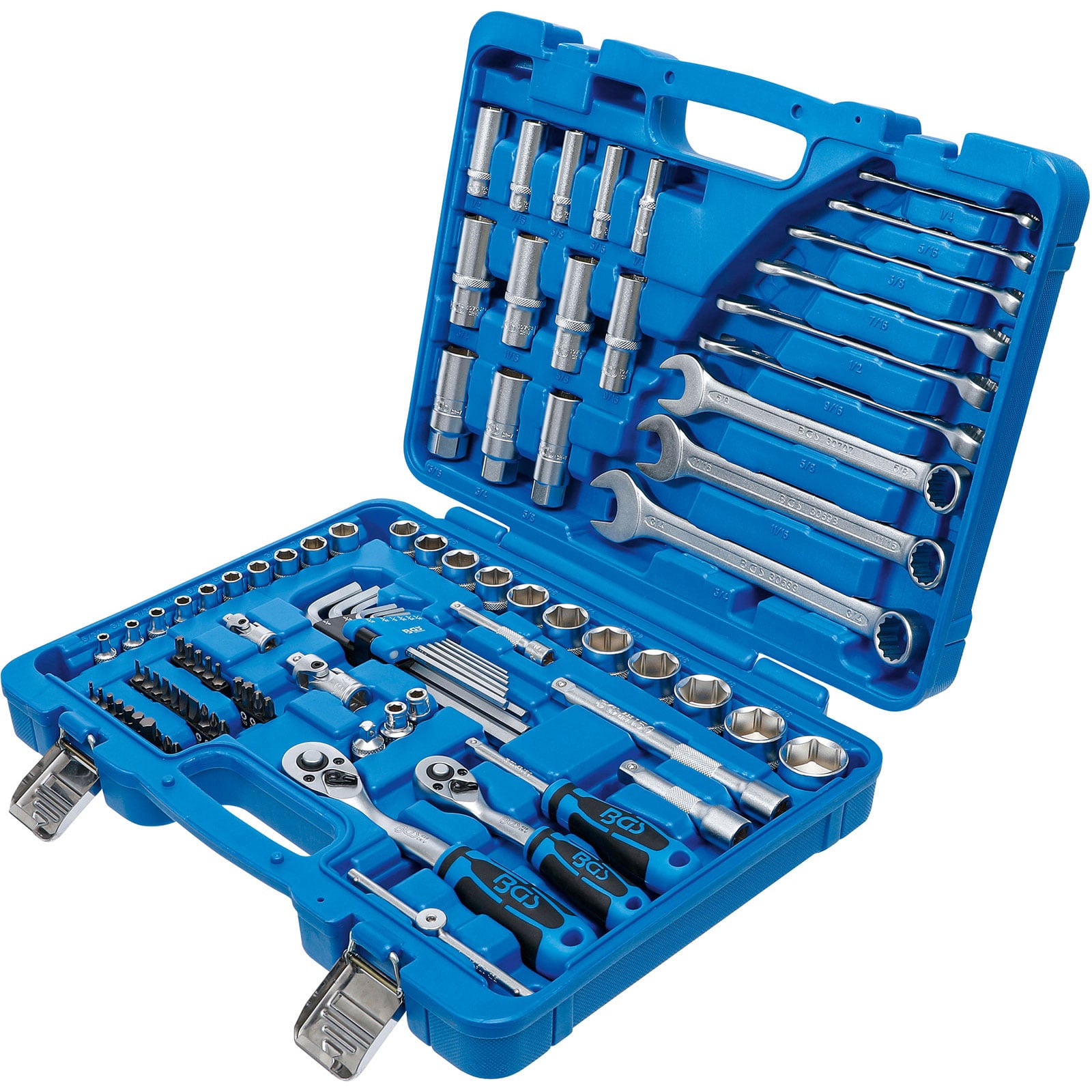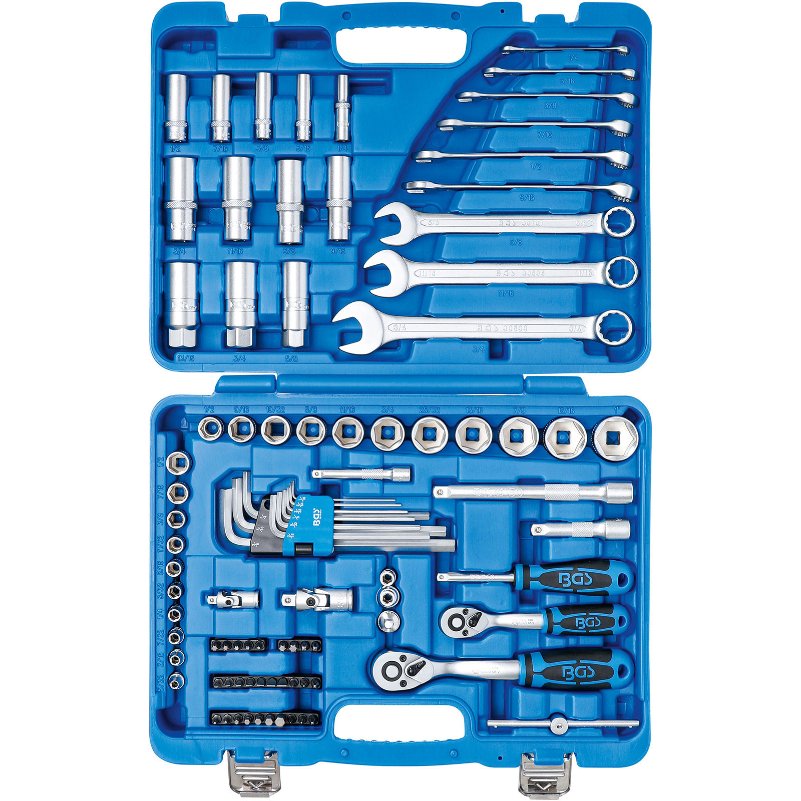 - 1x BGS Steckschlüssel-Satz Sechskant Antrieb 6,3 mm (1/4") / 10 mm (3/8") Zollgrößen 92tlg.