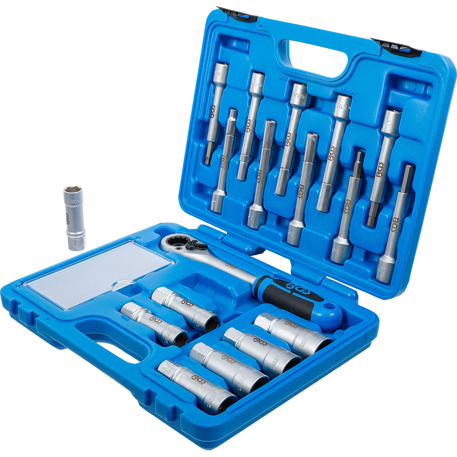 - 1 x Steckschlüssel-Einsatz Sechskant, tief, Antrieb Innenvierkant 12,5 mm (1/2"), Länge 122 mm, SW 8 mm, passend für BMW