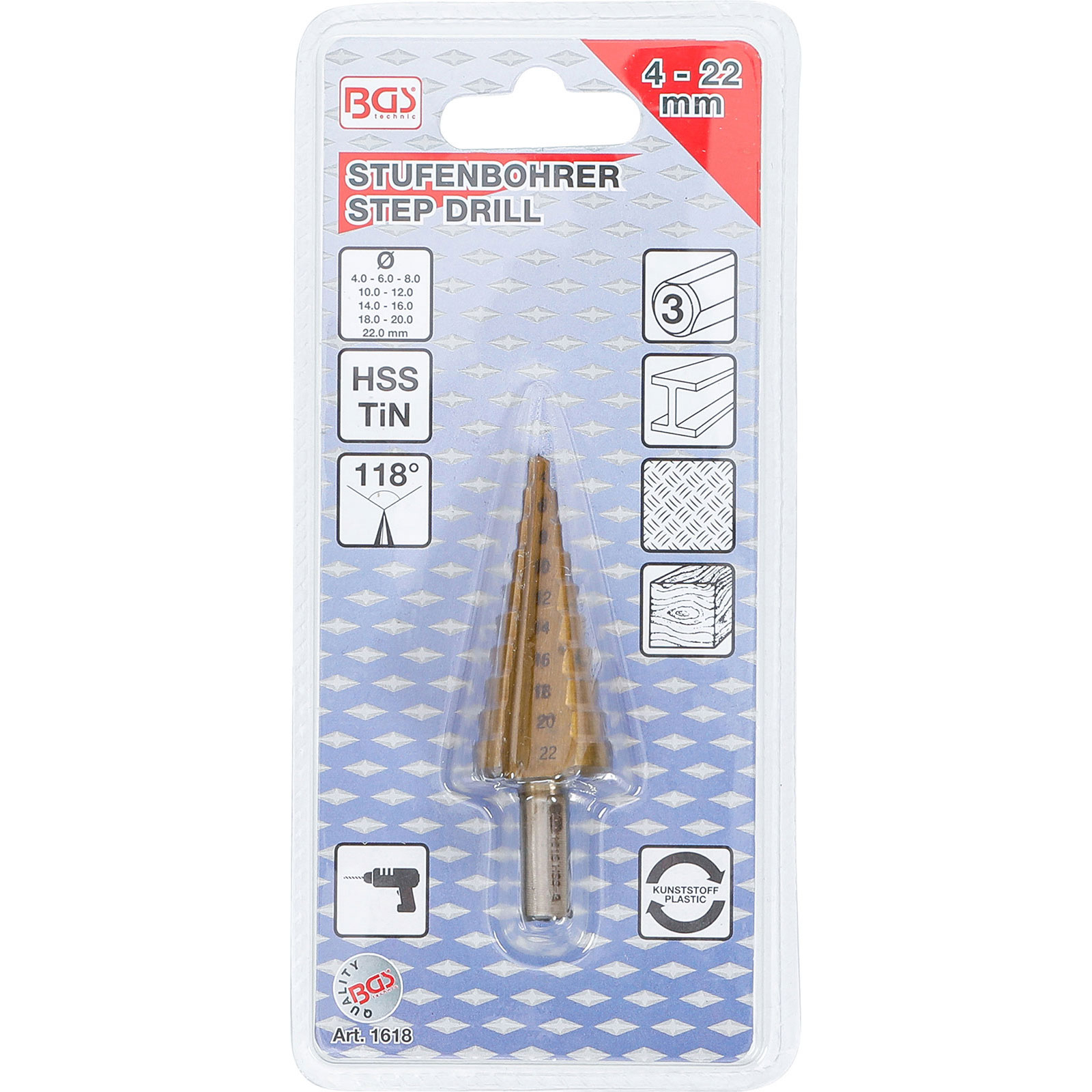 "BGS Stufenbohrer titannitriert Ø 4 - 22 mm - 1618"