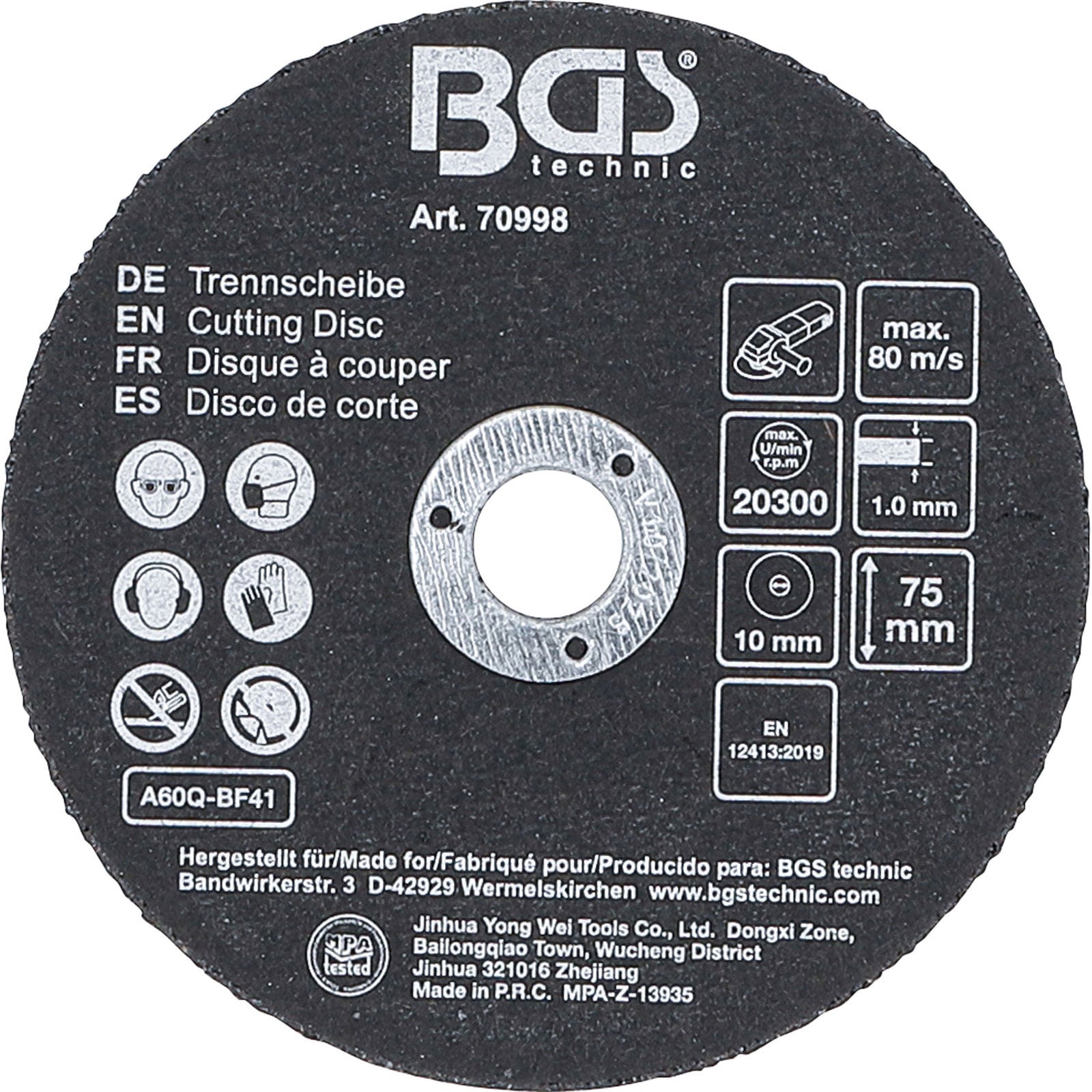 "BGS Trennscheiben-Satz für Edelstahl Ø 75 x 1,0 x 10 mm 5tlg. - 70998"
