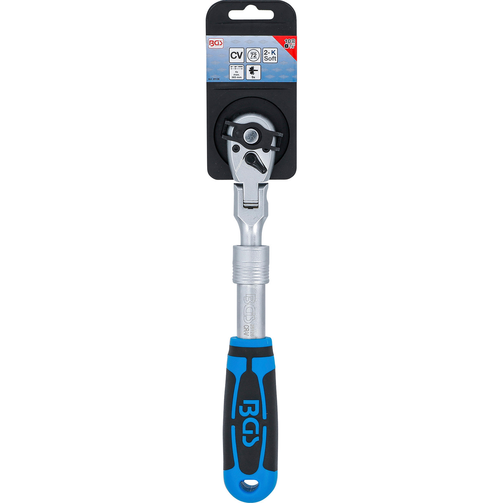 "BGS Umschaltknarre ausziehbar abwinkelbar Abtrieb Außenvierkant 10 mm (3/8") 260 - 365 mm - 25126"