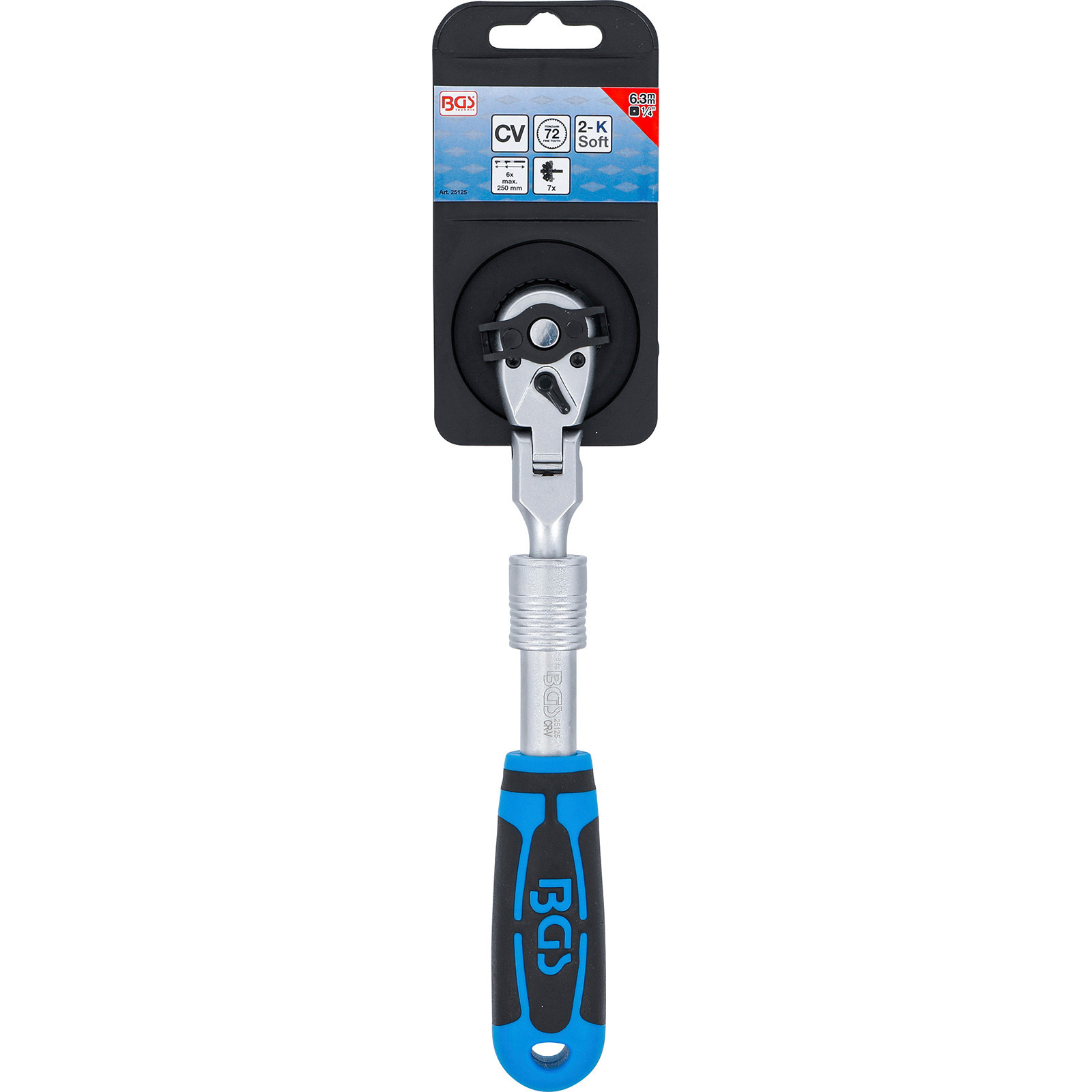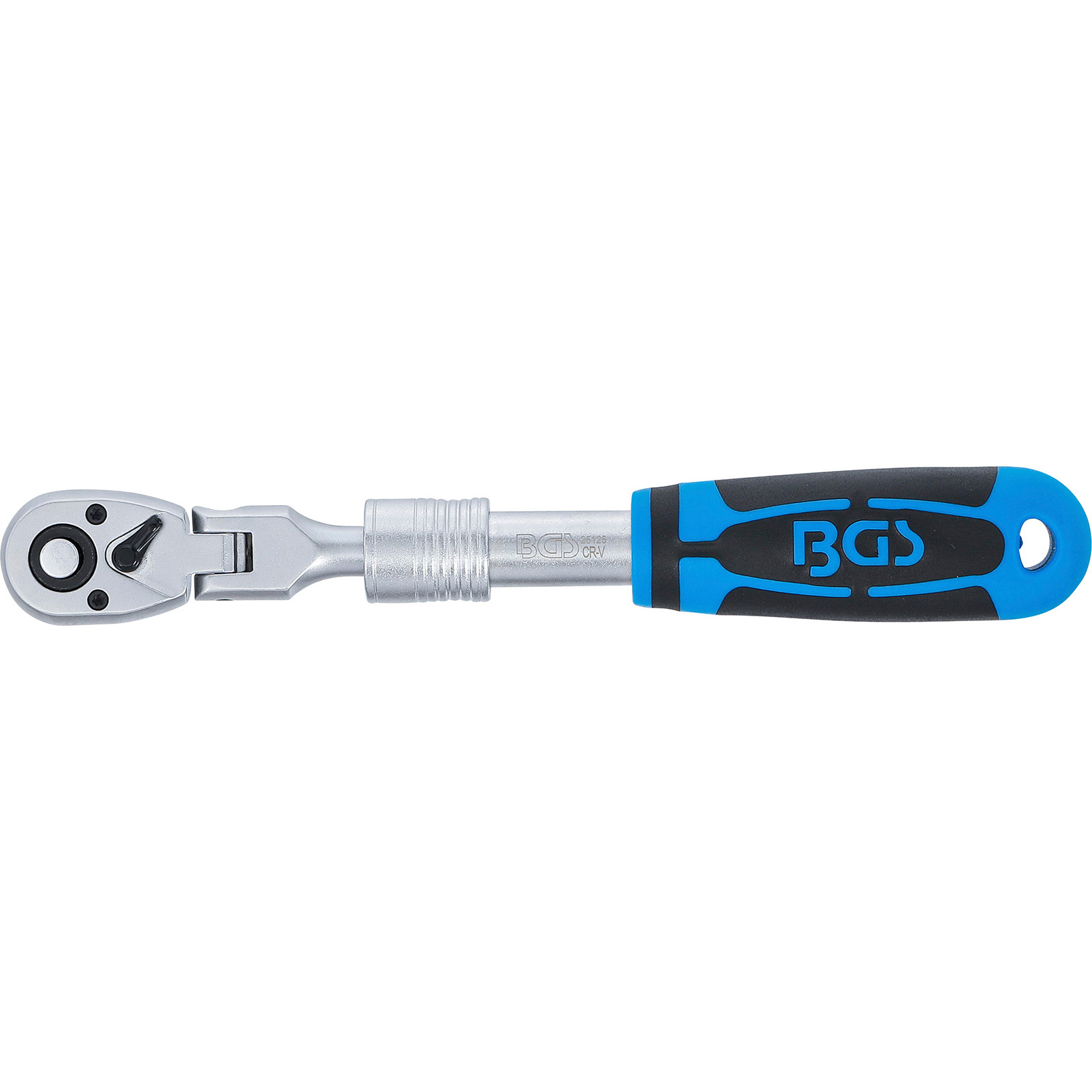 "BGS Umschaltknarre ausziehbar abwinkelbar Abtrieb Außenvierkant 6,3 mm (1/4") 210 - 250 mm - 25125"
