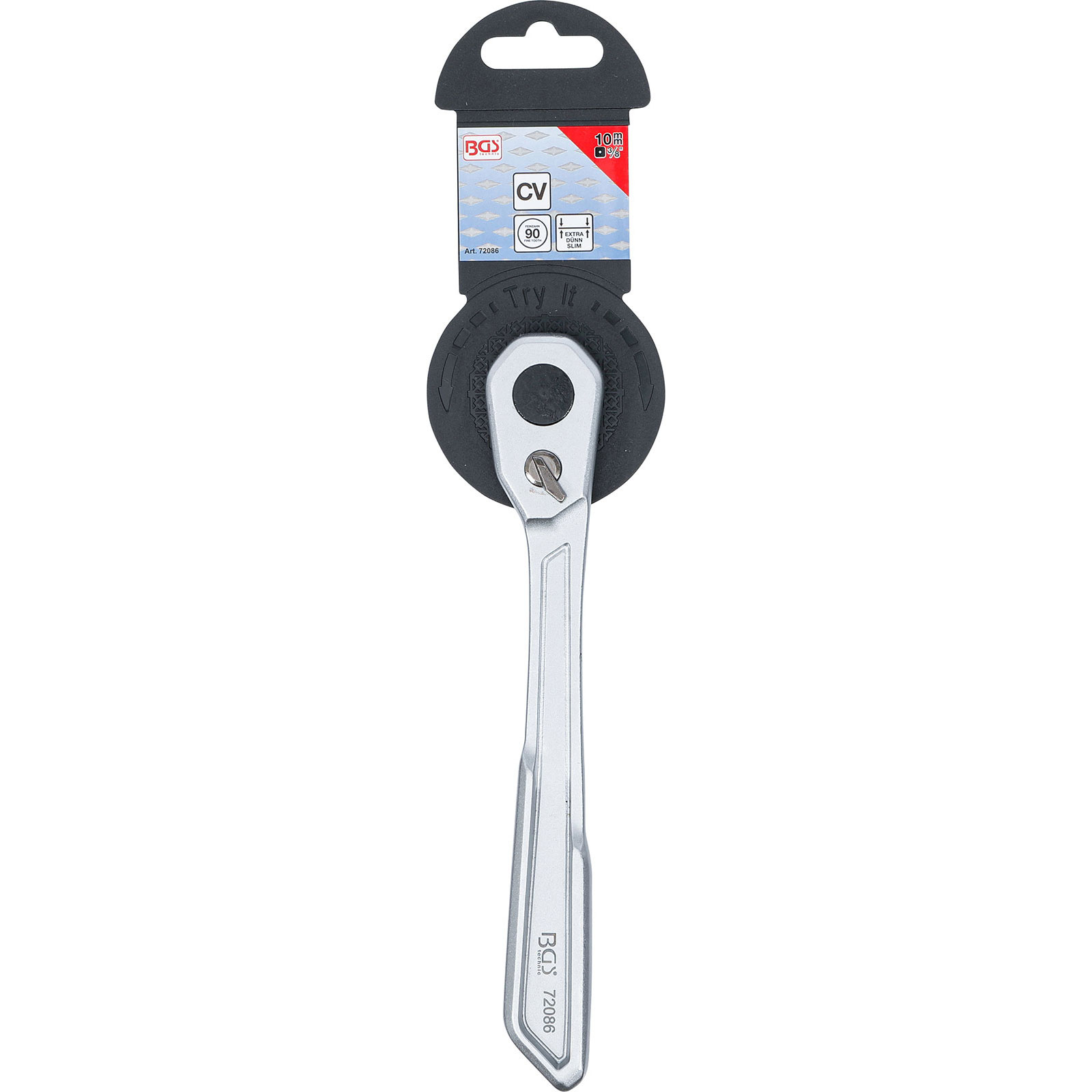 "BGS Umschaltknarre extra flach feinverzahnt Abtrieb Außenvierkant 10 mm (3/8") - 72086"