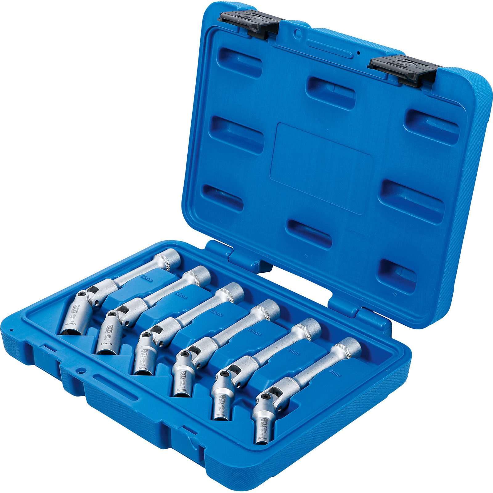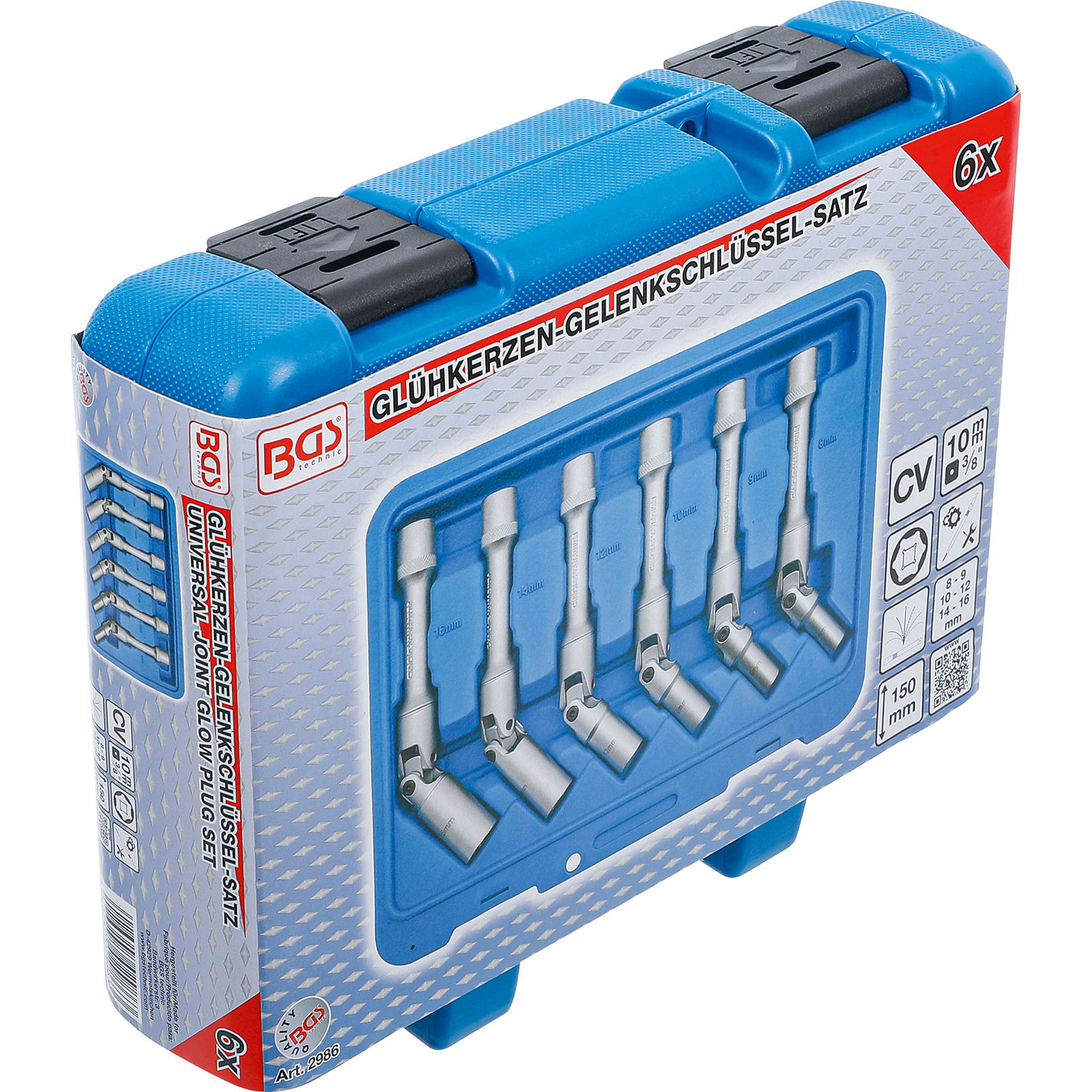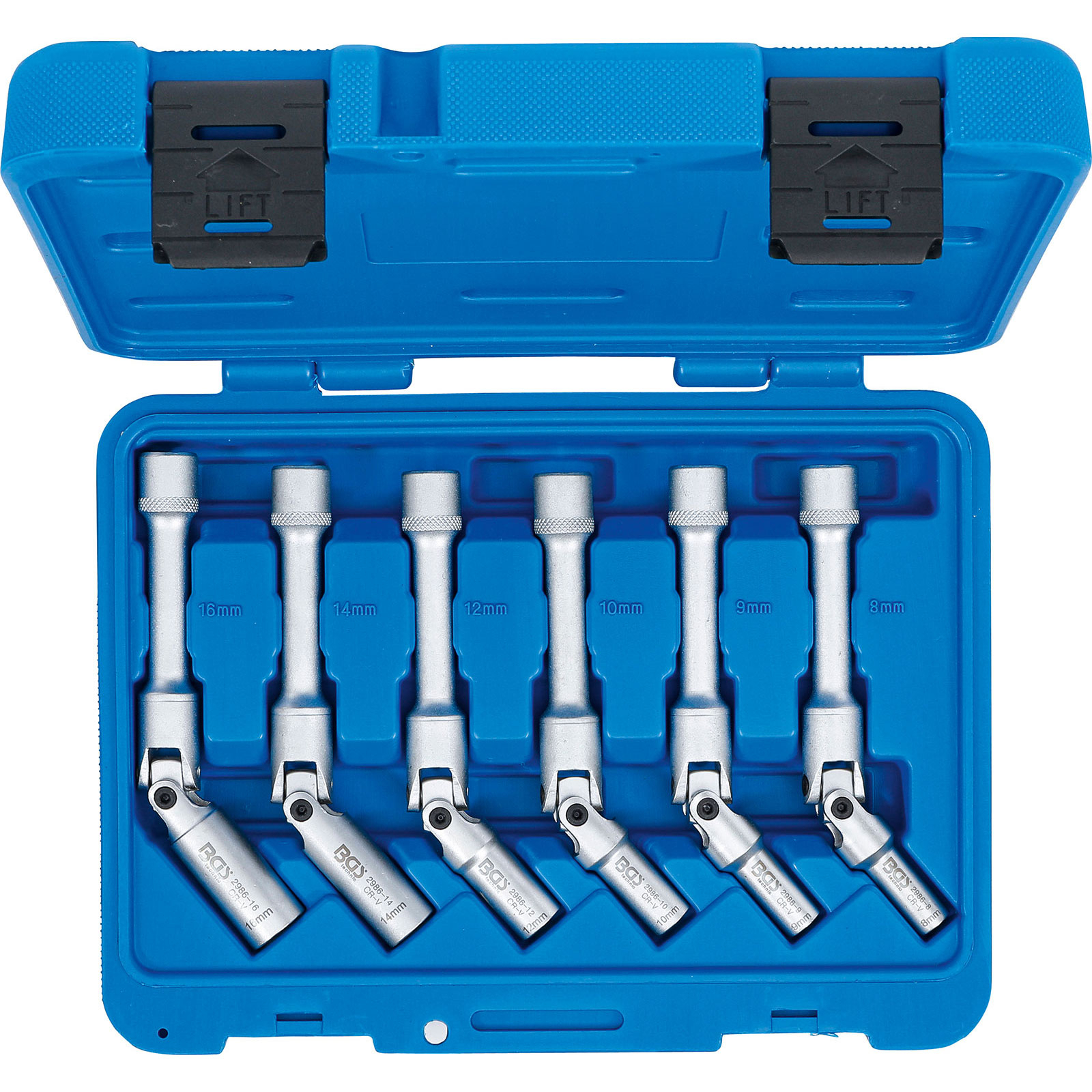 "BGS Universal Glühkerzen-Gelenkschlüssel-Satz Sechskant Antrieb Innenvierkant 10 mm (3/8") SW 8 - 16 mm 6tlg. extra lang - 2986"