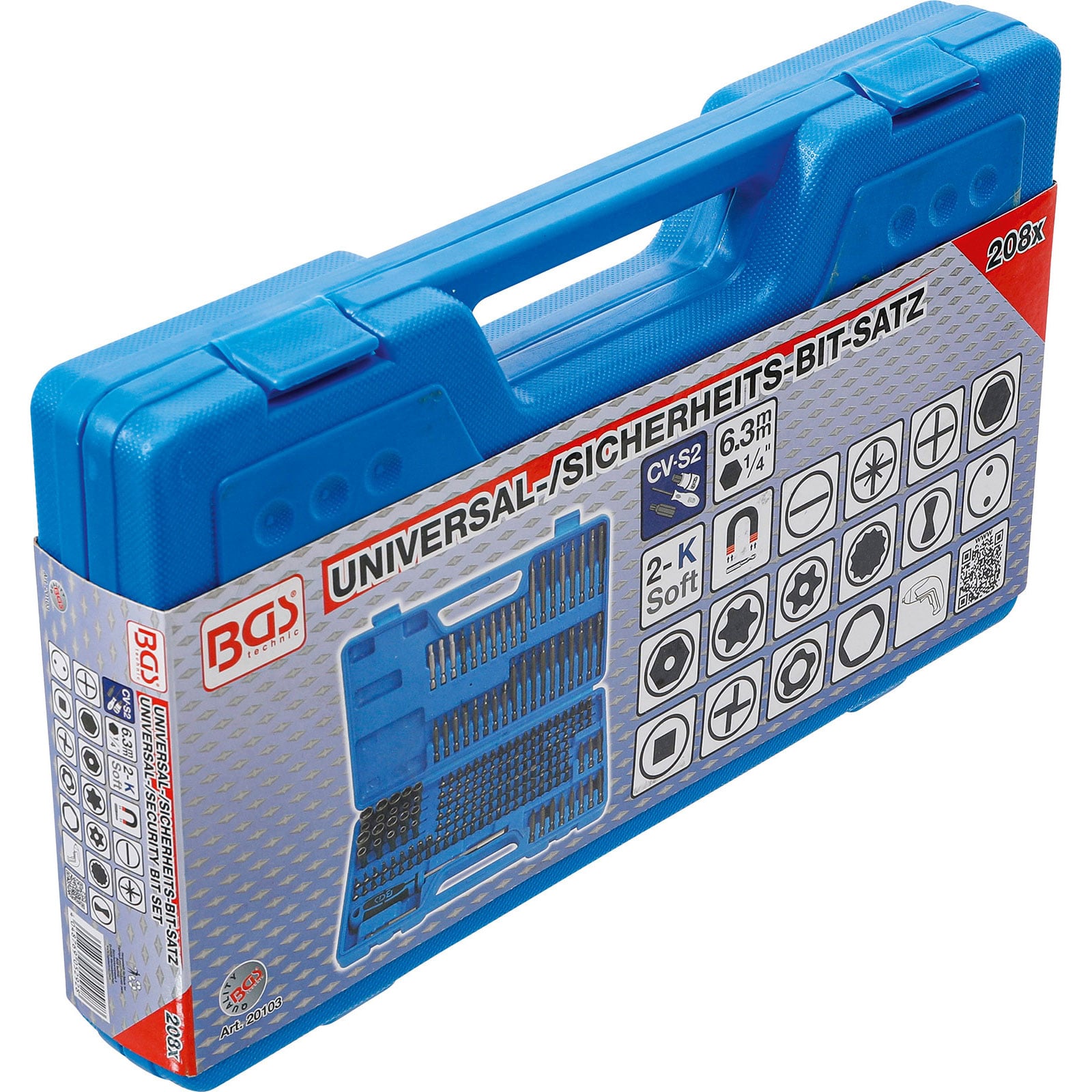 - 1x BGS Universal-/Sicherheits-Bit-Satz Antrieb Außensechskant 6,3 mm (1/4") 208tlg.
