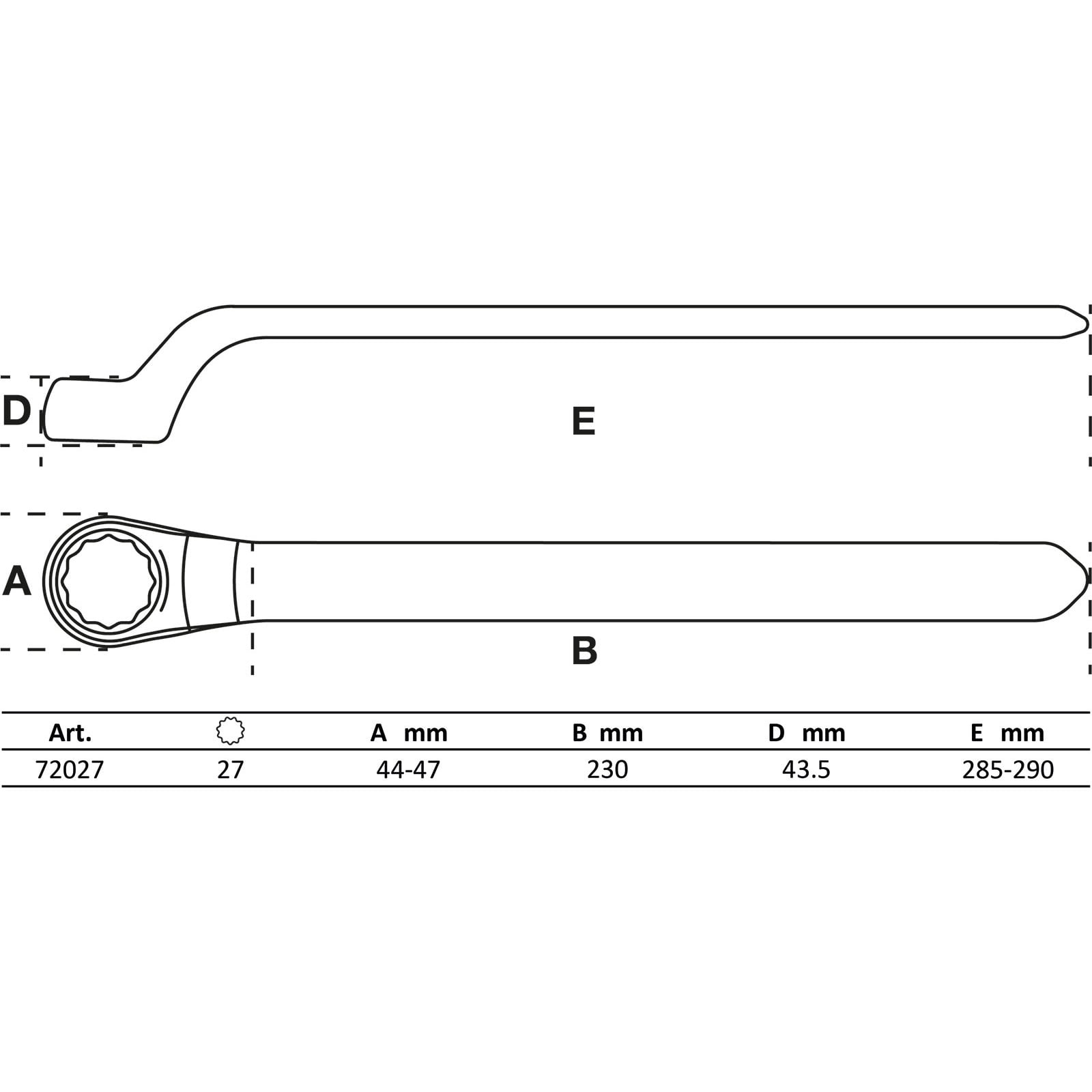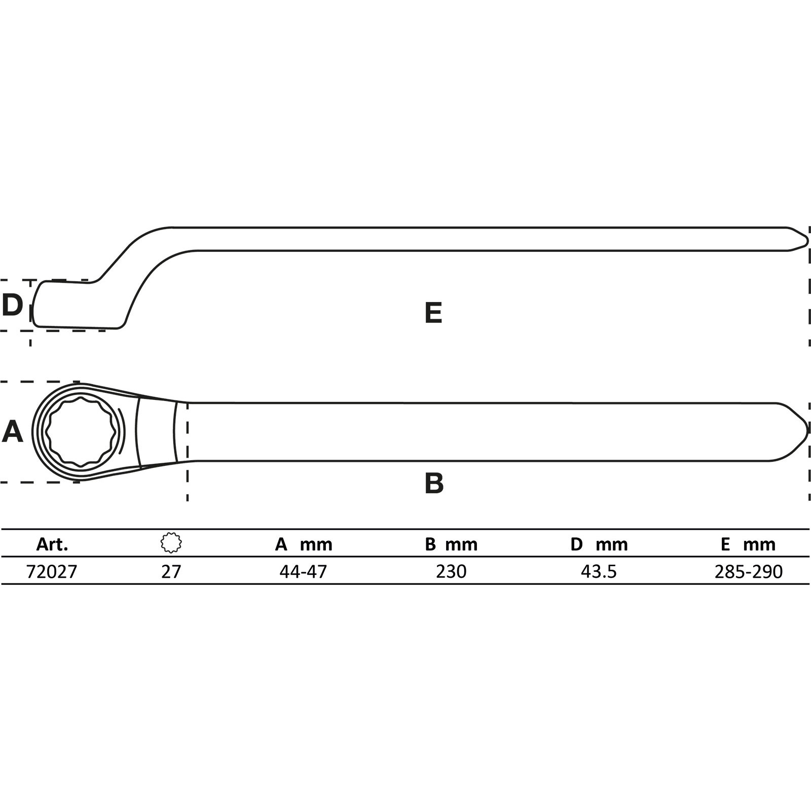 Material: Chrom-Vanadium-StahlBruttogewicht: 386 gVerpackung für Wandbehang geeignet: JaAbtriebsprofil: ZwölfkantDIN: EN/IEC 60900 Schlüsselweite: 27 mmAnmelden