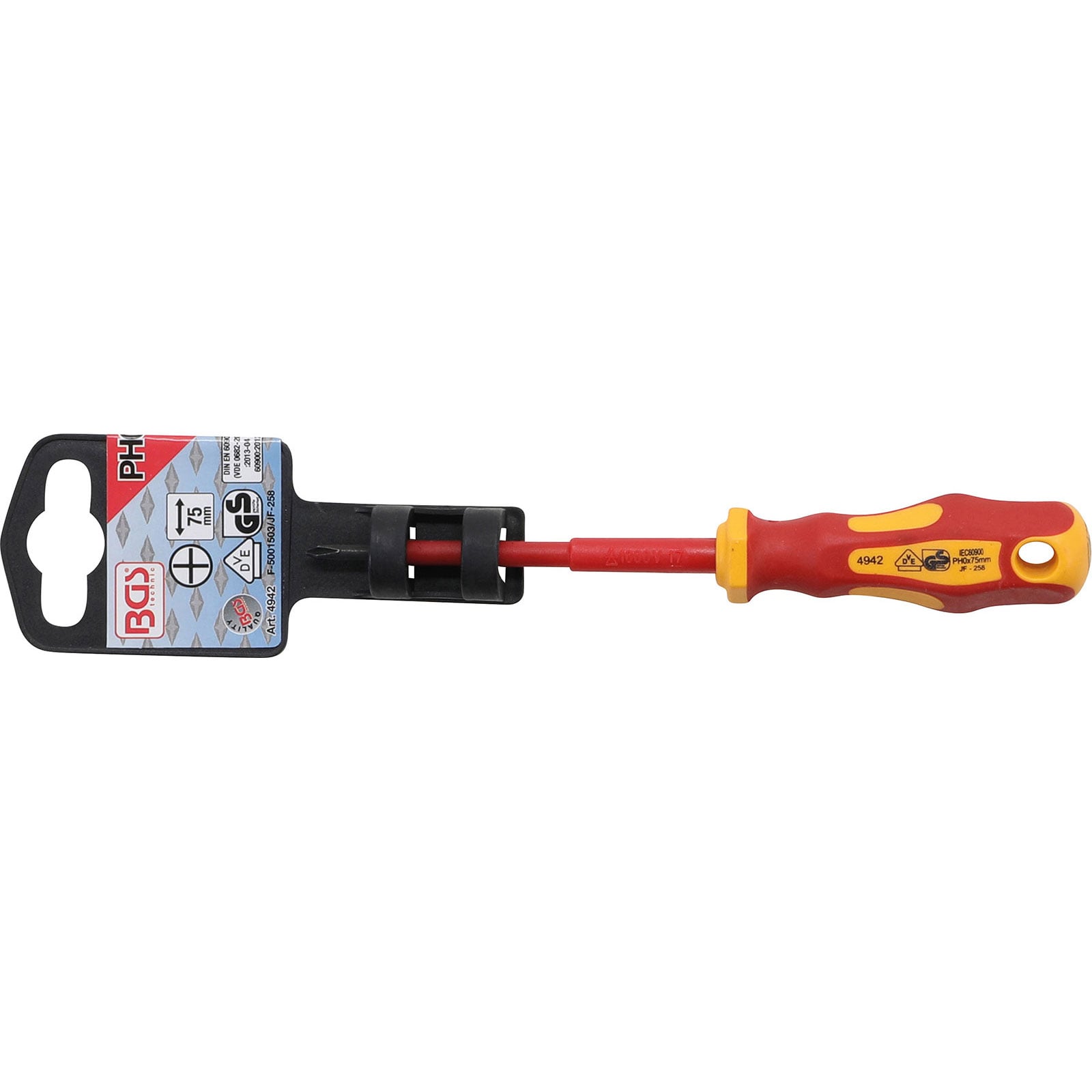 "BGS VDE-Schraubendreher Kreuzschlitz PH0 Klingenlänge 75 mm - 4942"