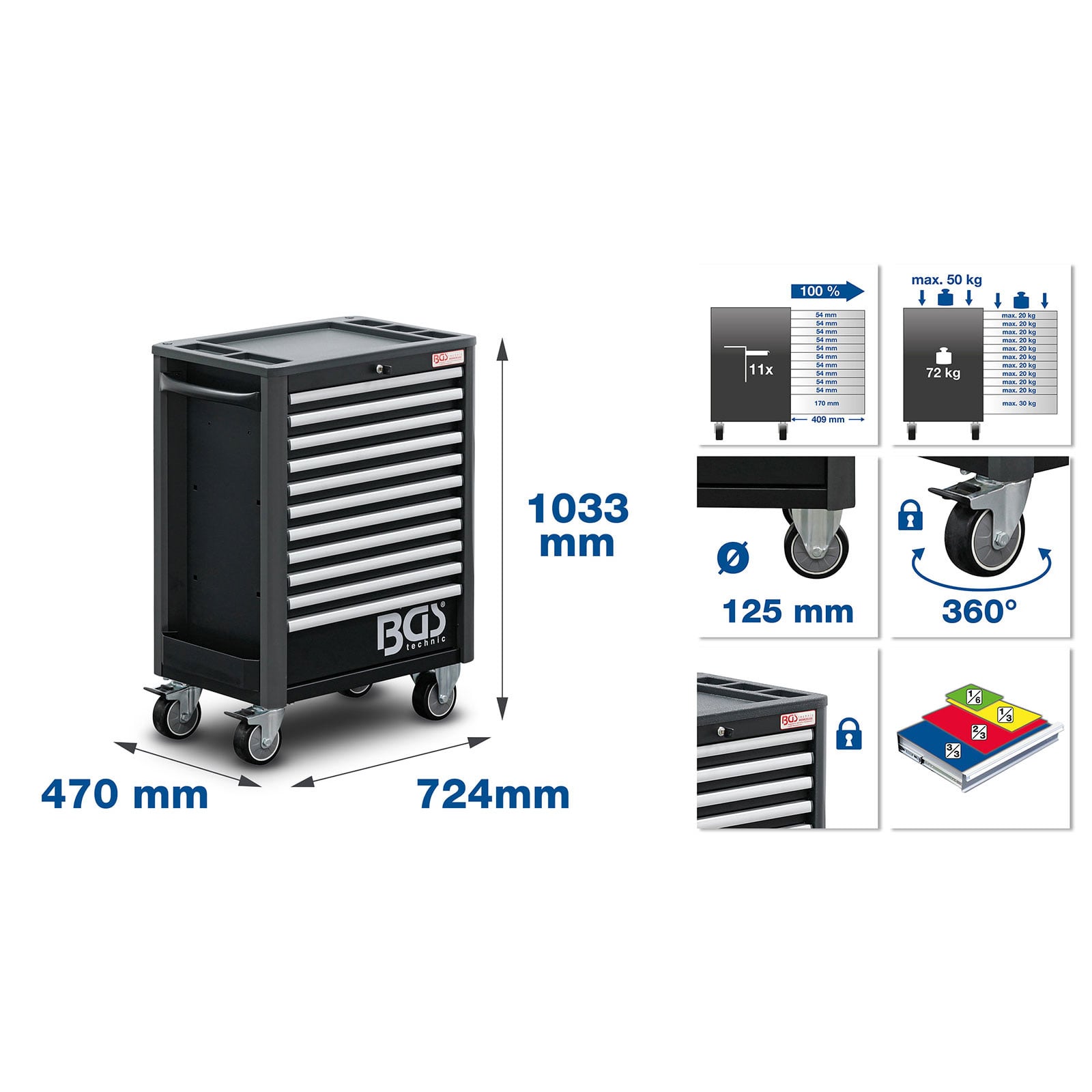 "BGS Werkstattwagen 11 Schubladen leer - 4103"