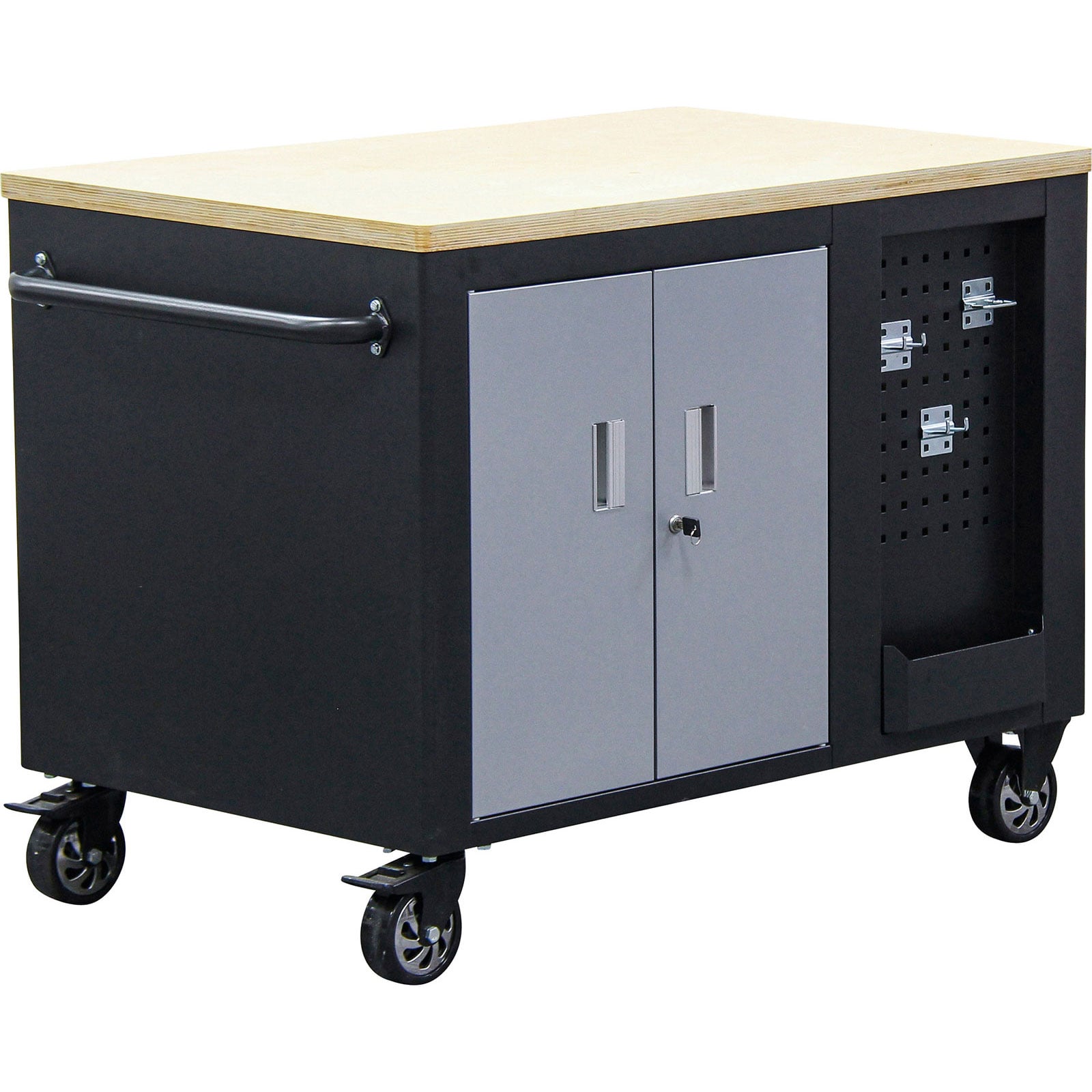 - 2 Ablagefächer mit darüber liegender Lochblechwand zum Aufhängen von Werkzeugen und anderer Utensilien, inkl. Hakensatz