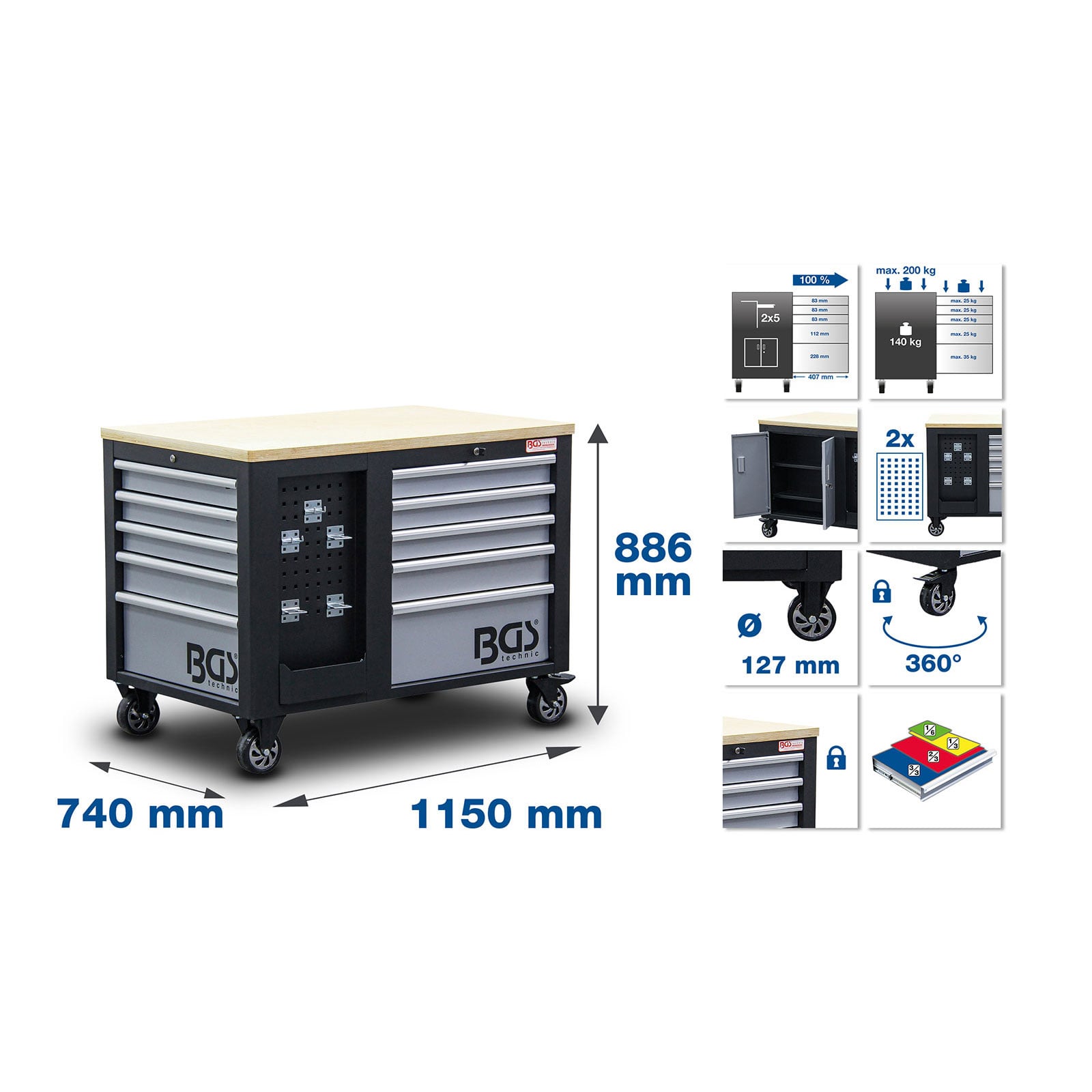 "BGS Werkstattwagen 2 x 5 Schubladen 1 Schrank leer - 4199"