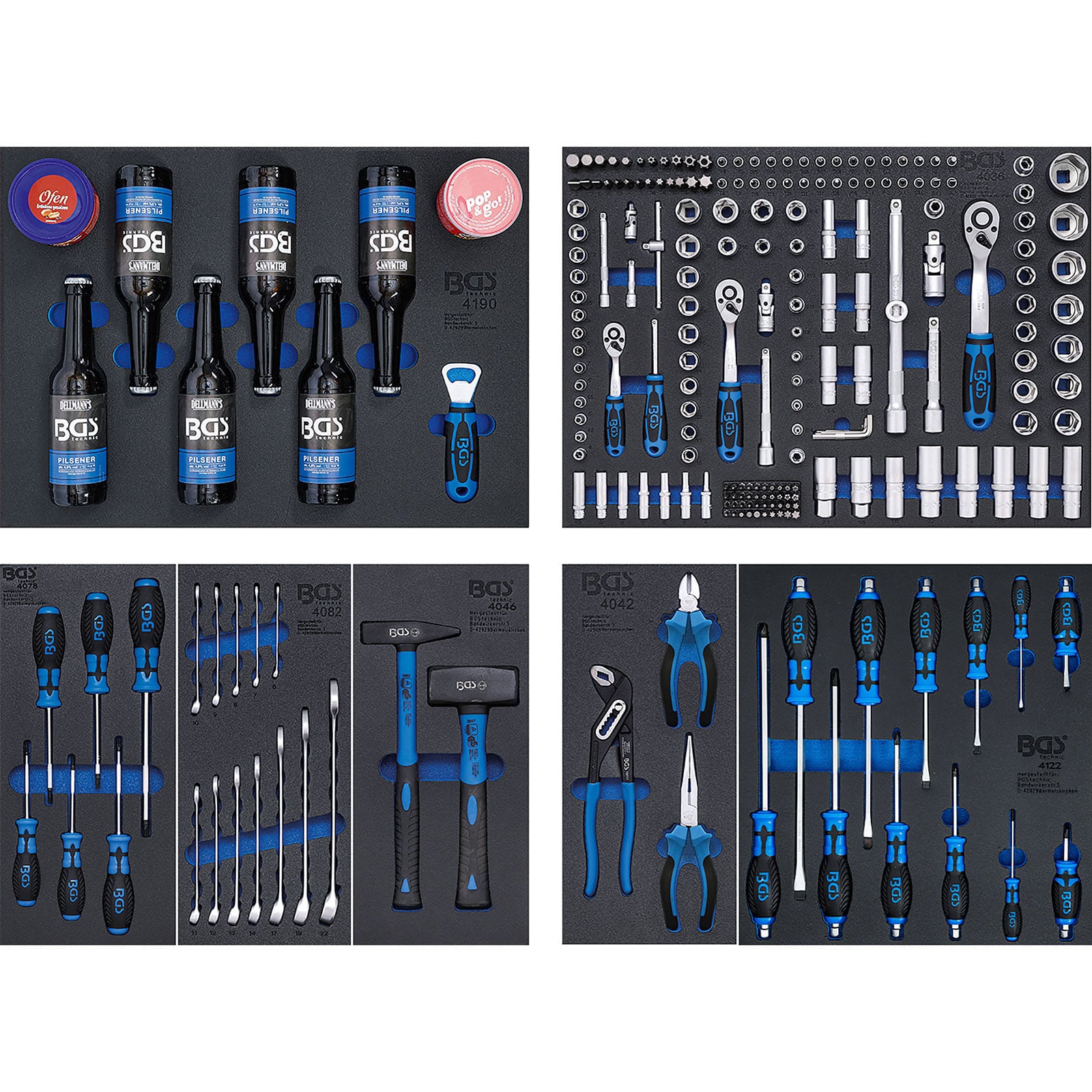 - 1 Werkstattwageneinlage 3/3 Bier, Chips, Erdnüsse und Flaschenöffner | 9-tlg. (Art. 4190)