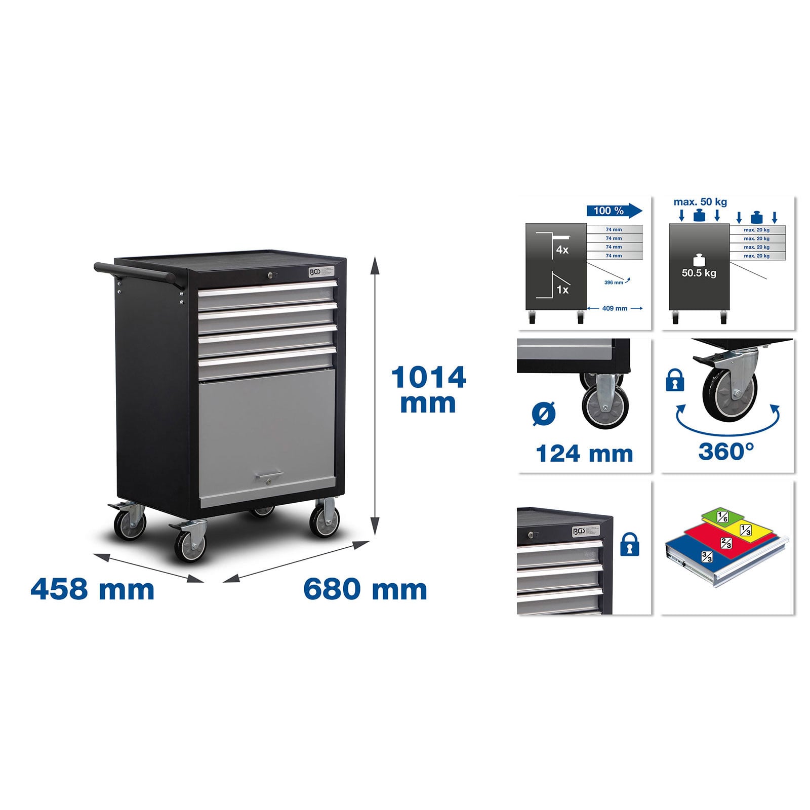 Schubladenauszug: 100 %Bruttogewicht: 68840 gSchubladenbreite: 569 mmSchubladenhöhe: 52 mmTiefe: 458 mmSchubladentiefe: 409 mmBreite: 680 mmAnzahl Schubladen: 4 StückHöhe: 1000 mmAnmelden
