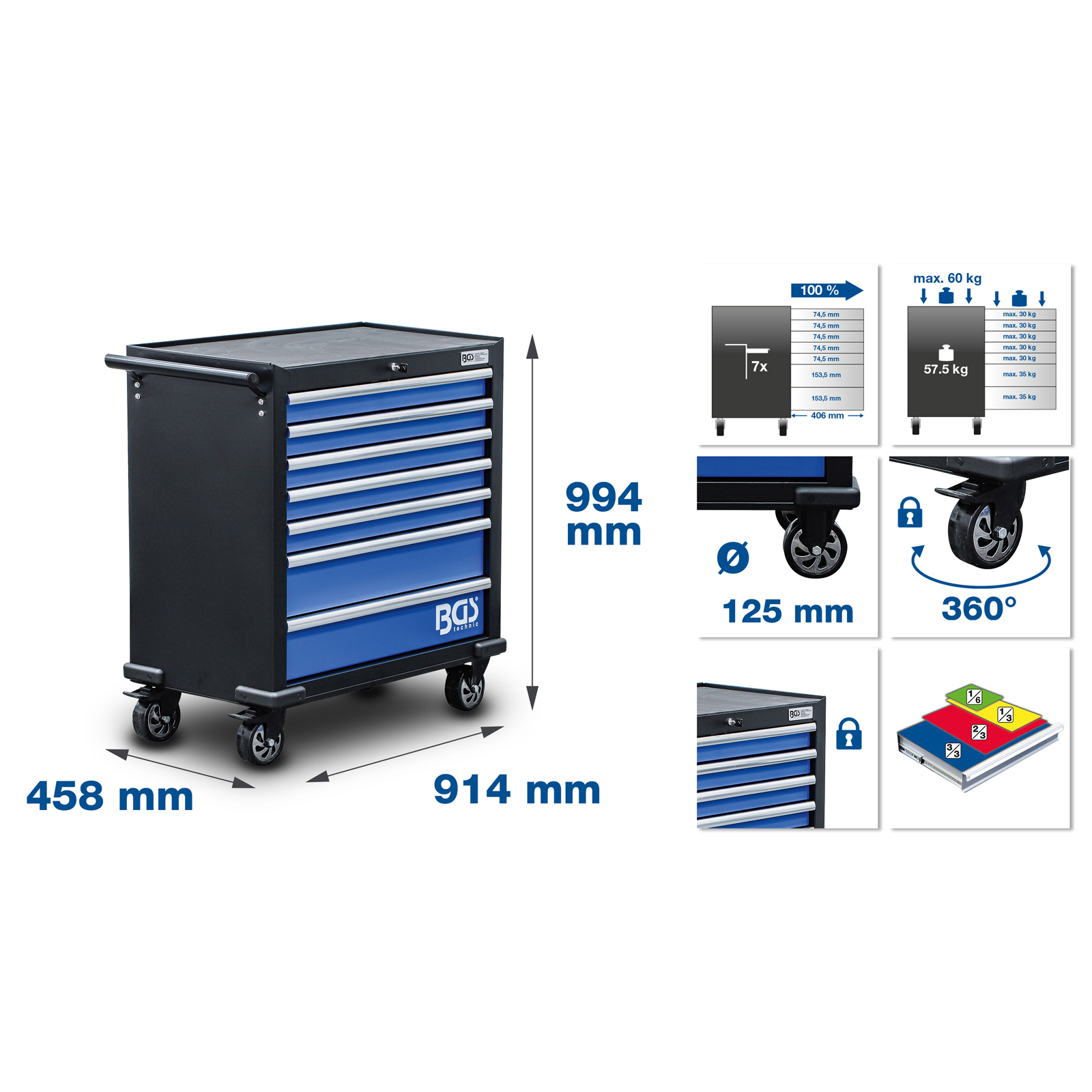 1x BGS Werkstattwagen XL | 7 Schubladen | mit 301 Werkzeugen, bestehend aus: