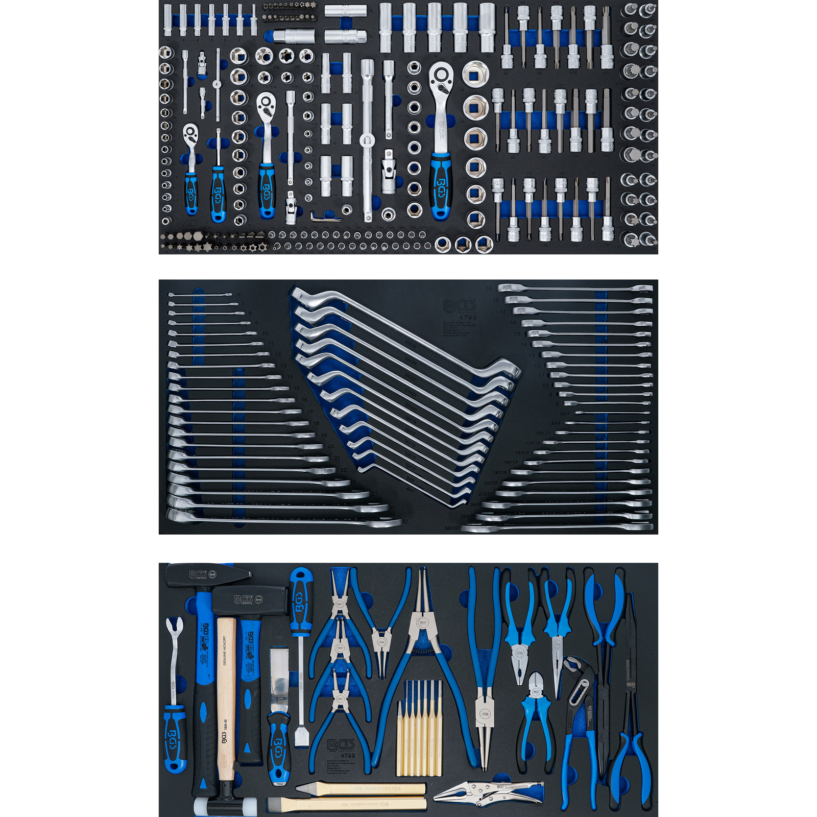 - bestückt mit 301 hochwertigen Werkzeugen in drei Schaumeinlagen XL